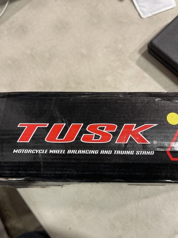 AS NEW TUSK MOTORCYCLE WHEEL BALANCING AND TRUING STAND AND MC SHOCK SPRING COMPRESSOR KIT