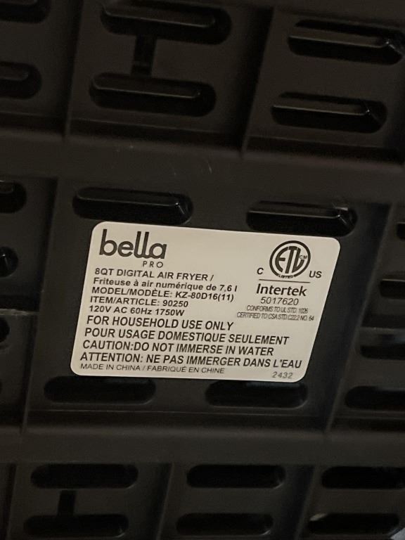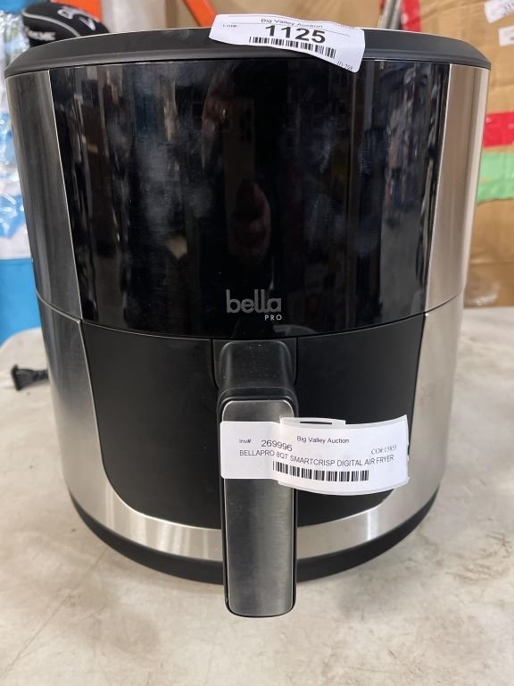 AS NEW UNUSED BELLAPRO 8QT SMARTCRISP DIGITAL AIR FRYER W/ EVERGOOD CERAMIC - TESTED WORKING, RETAIL $249