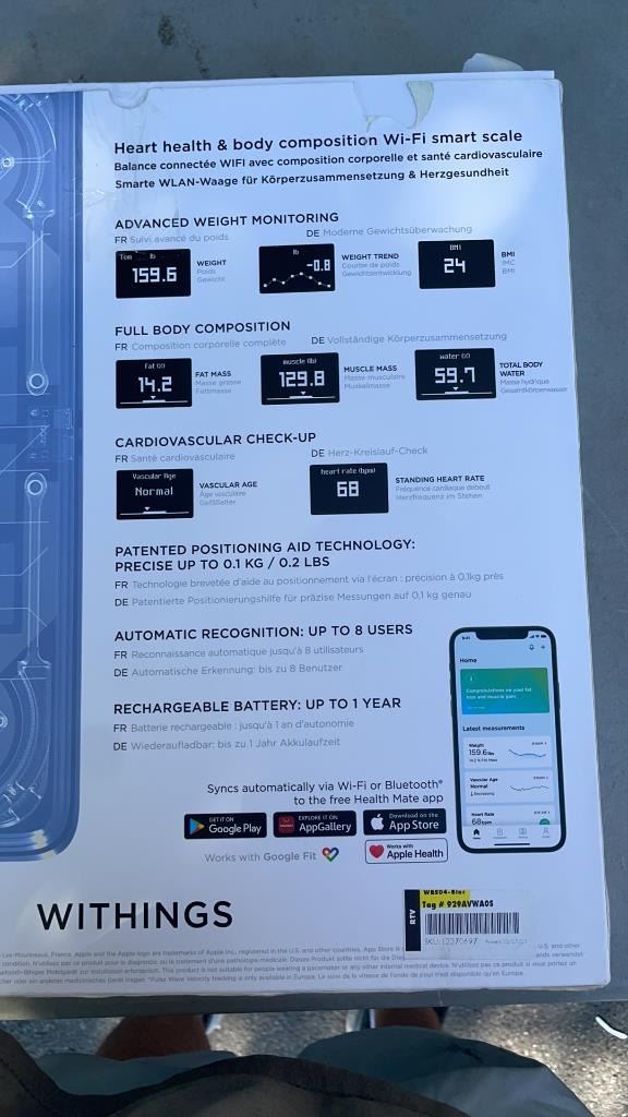 AS NEW WITHINGS BODY CARDIO SCALE TESTED AND WORKING - RETAIL $229