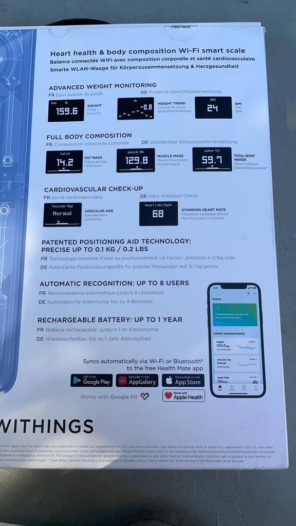 AS NEW WITHINGS BODY CARDIO SCALE TESTED AND WORKING - RETAIL $229