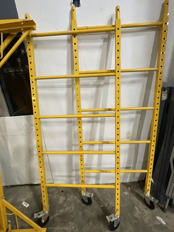 AS NEW YELLOW ROLLING SCAFFOLD SECTION, 29 X 74 INCH, INCLUDES ONE PLATFORM