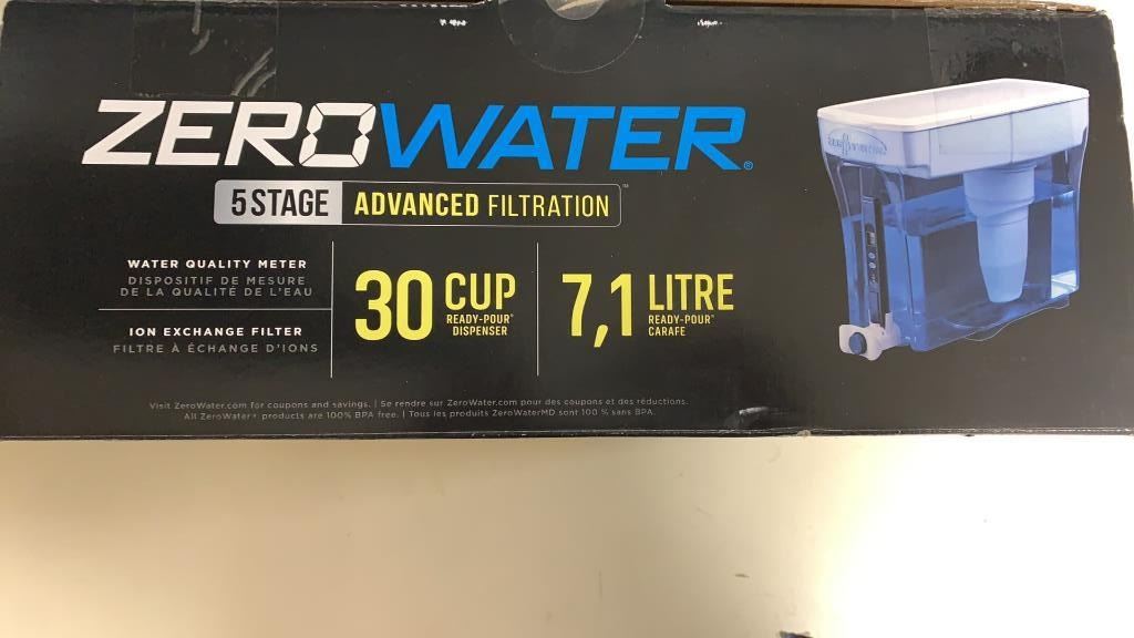 AS NEW ZERO WATER 5 STAGE 30 CUP DRINK DISPENSER - RETAIL $84