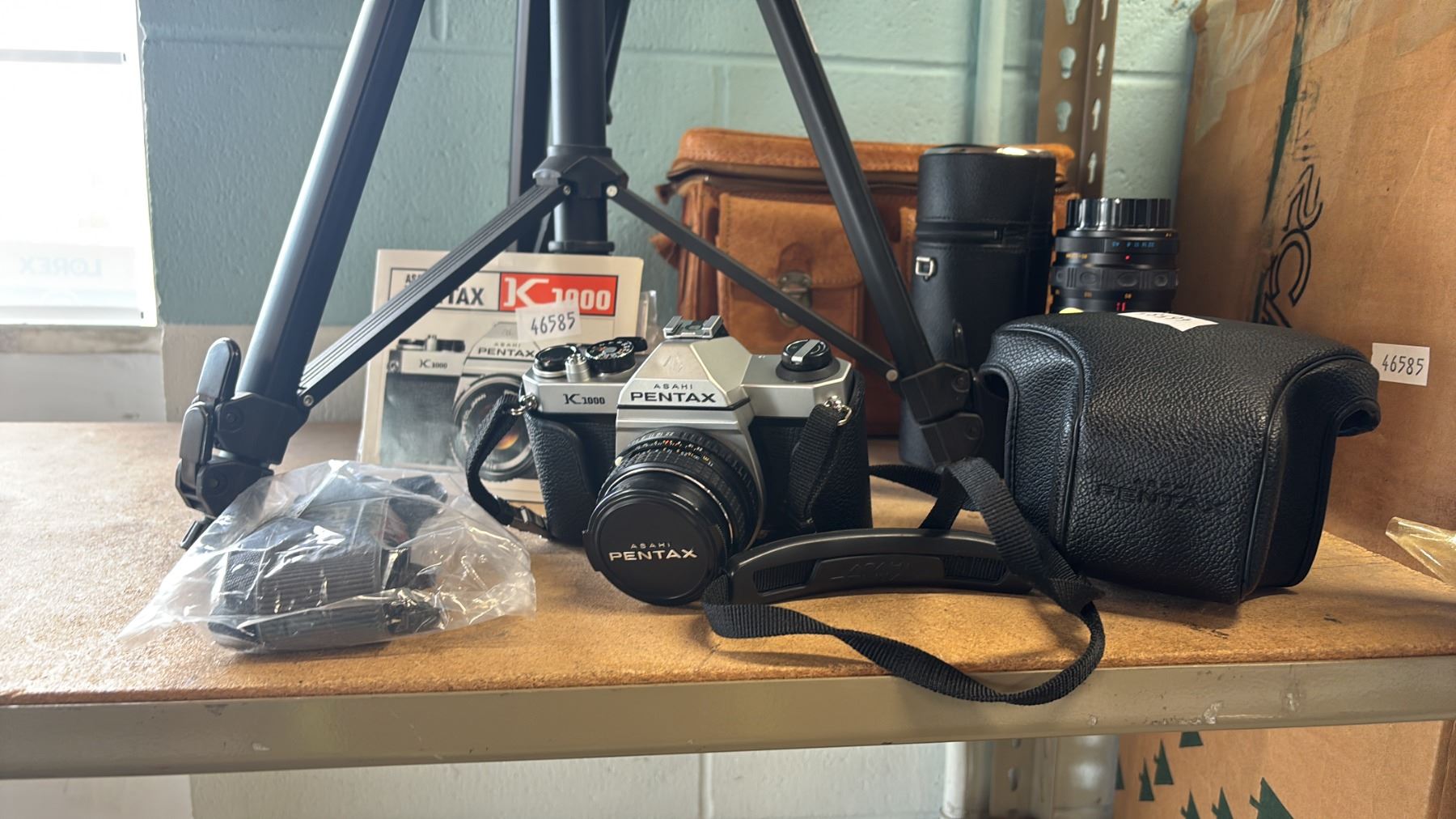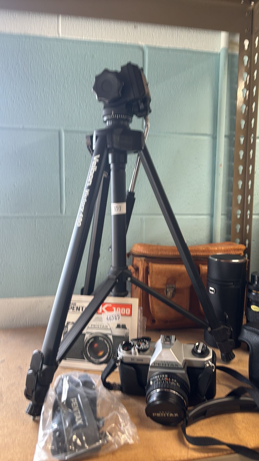 ASHAI PENTAX K1000 CAMERA WITH LENSES, CASE, STRAP & TRIPOD