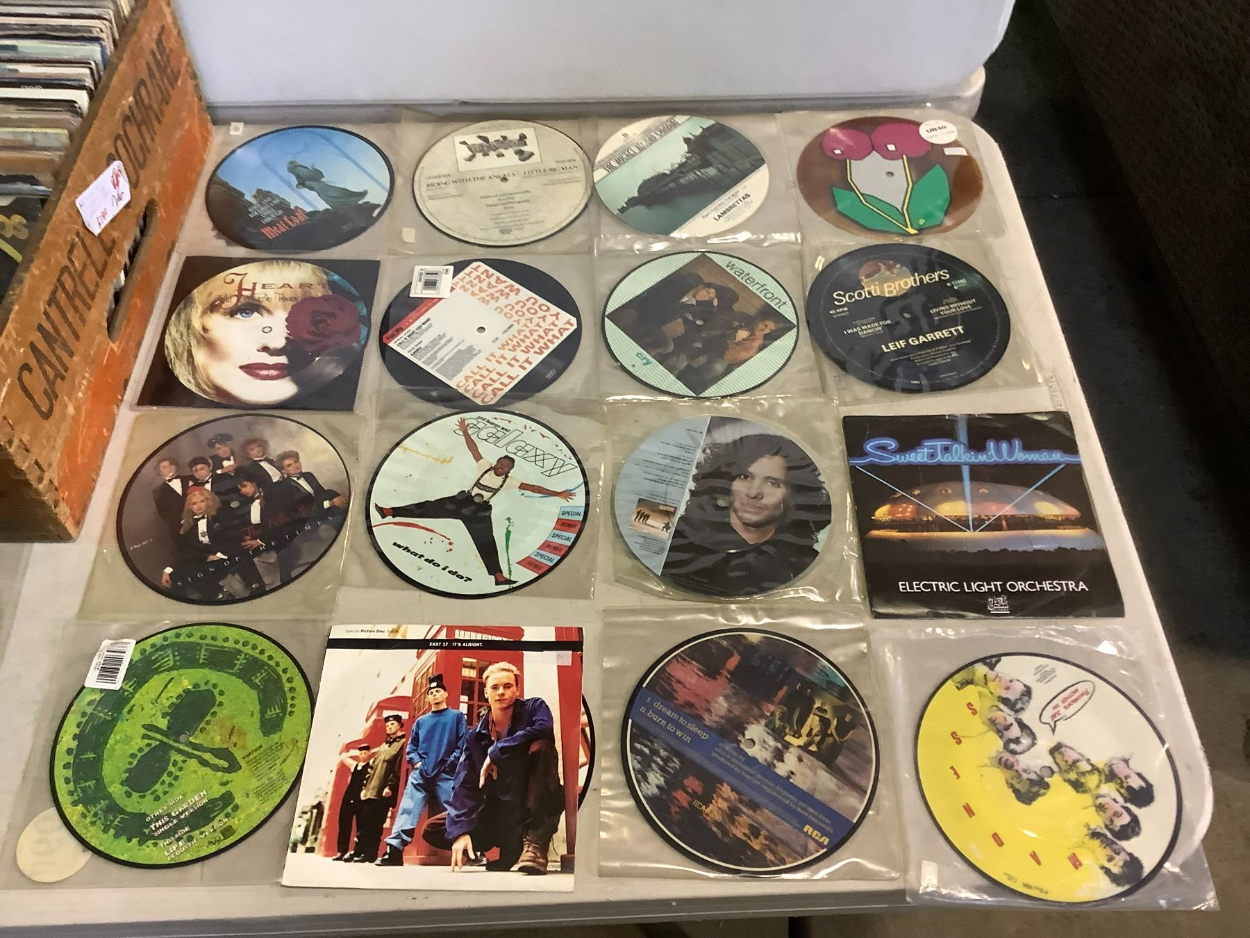 ASSORTED 45 AND 33-1/3 RPM VINYL RECORDS ARTISTS INCLUDE THE BELLE STARS, NATASHA, AN AMERICAN TAIL, EAST 17, MEATLOAF, WALKERFRONT, ROLAND RAT SUPERSTAR, AND MORE, MANY ENGLISH PRESSED