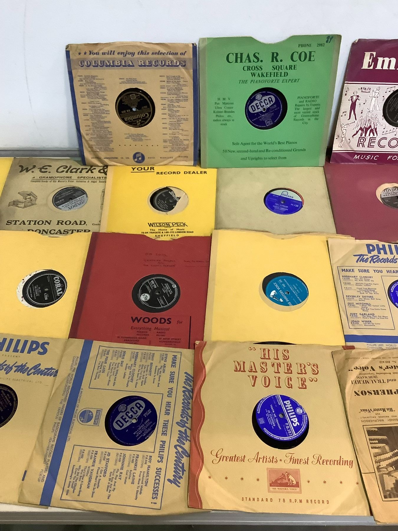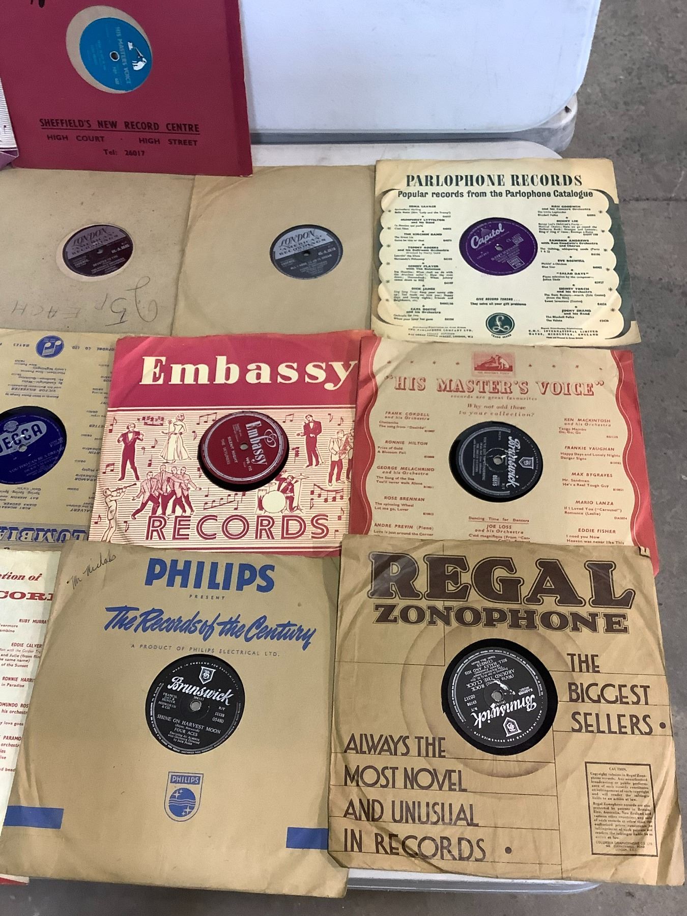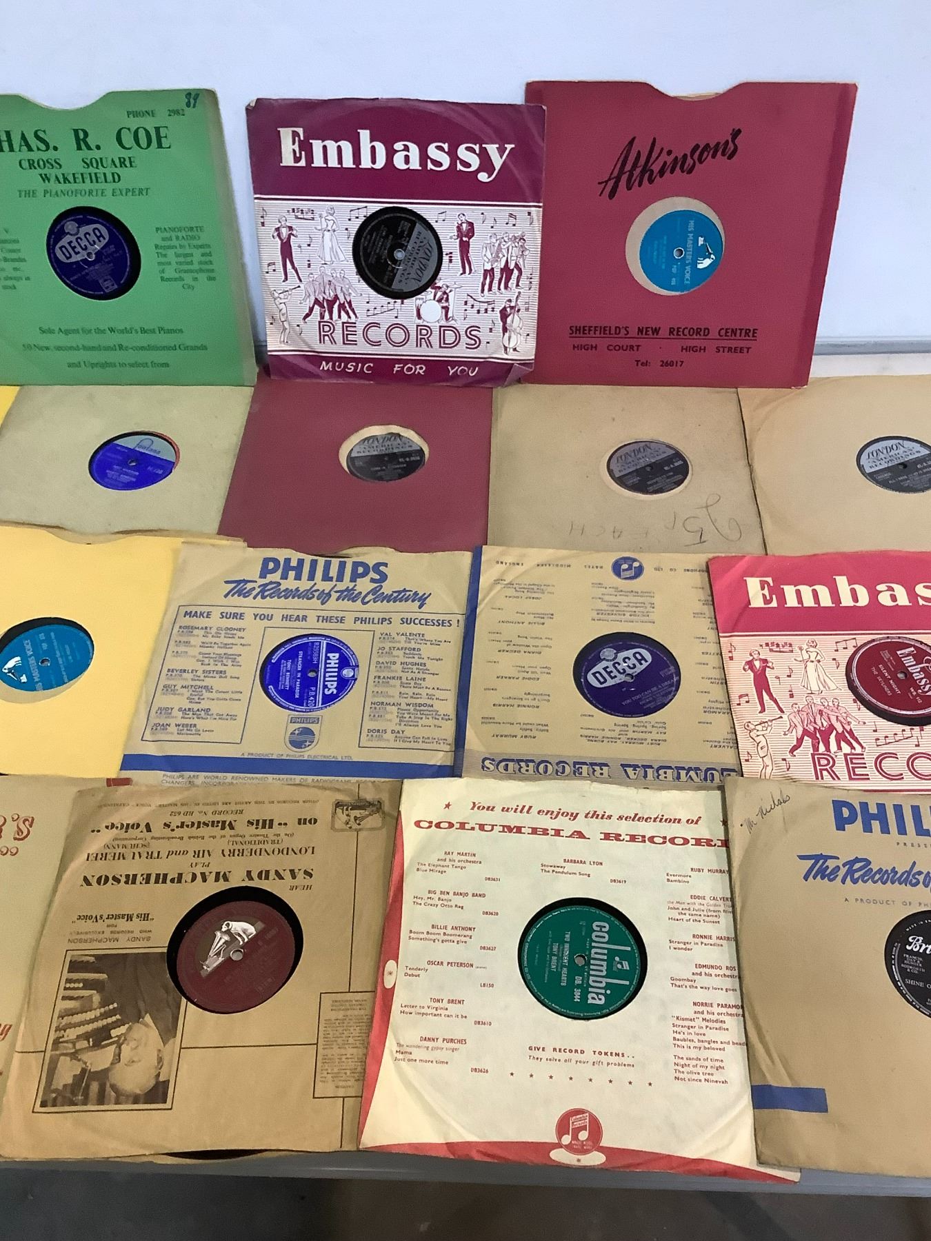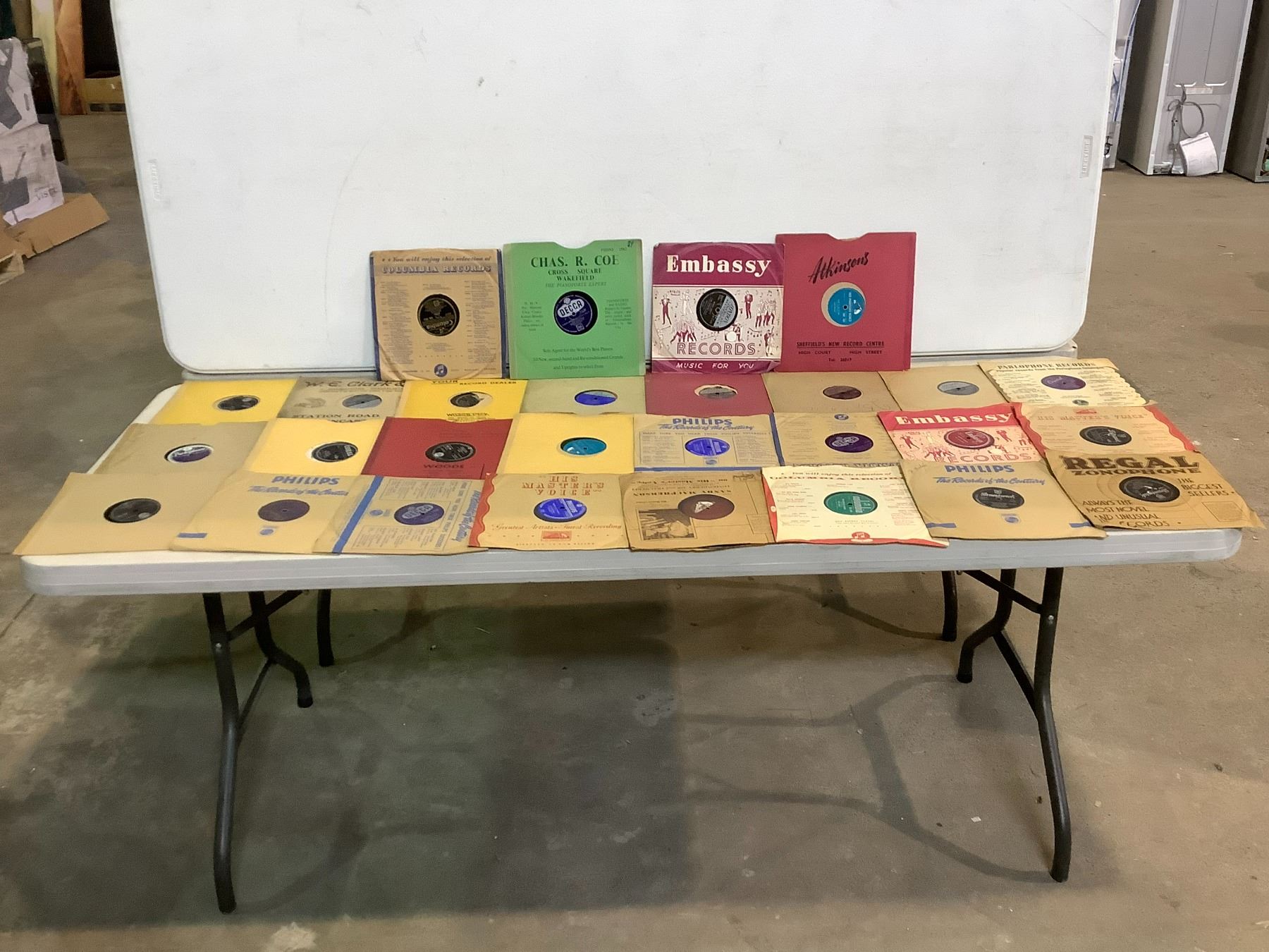 ASSORTED 78 VINYL RECORDS ARTISTS INCLUDE JOHNNY CASH, ELVIS PRESLEY, EVERLY BROTHERS, TONY BENNETT, DICKIE VALENTINE, JO STAFFORD, AND MORE, MANY ENGLISH PRESSED