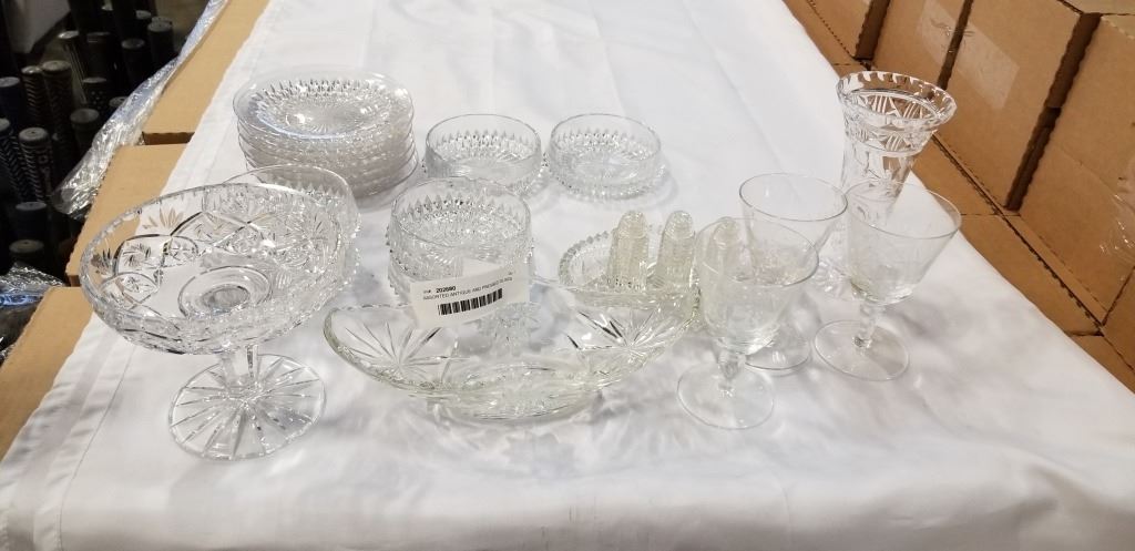 ASSORTED ANTIQUE AND PRESSED GLASS CRYSTAL ITEMS