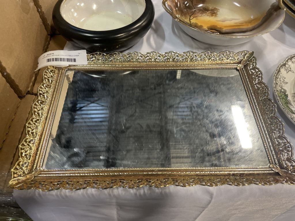 ASSORTED ANTIQUE COLLECTIBLE CHINA AND MIRROR, INCLUDING NORITAKE BOWL, GRIM WADE BOWL ETC