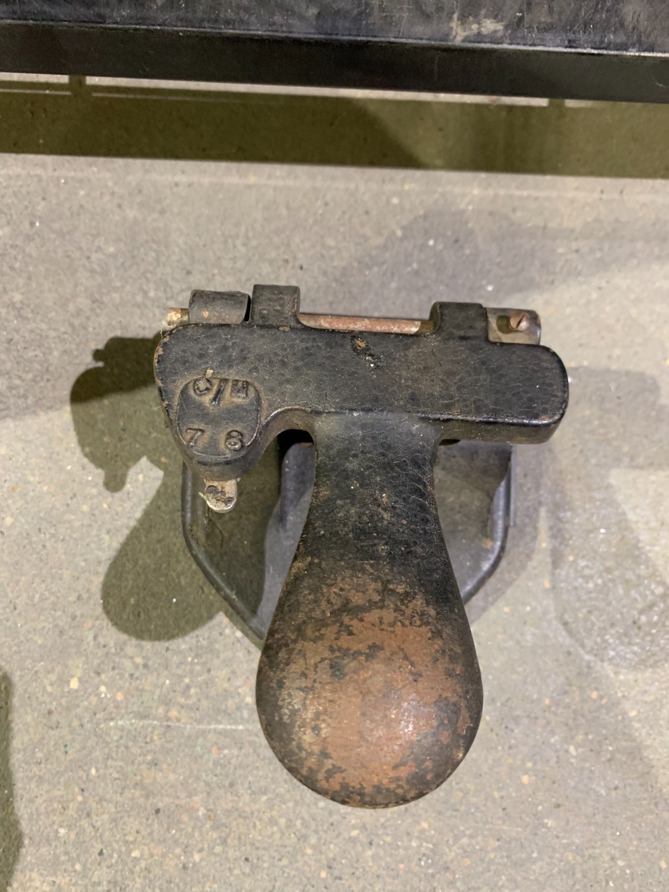 ASSORTED ANTIQUES INCLUDING; OIL CANS, AMMO BOX & HOLE PUNCH
