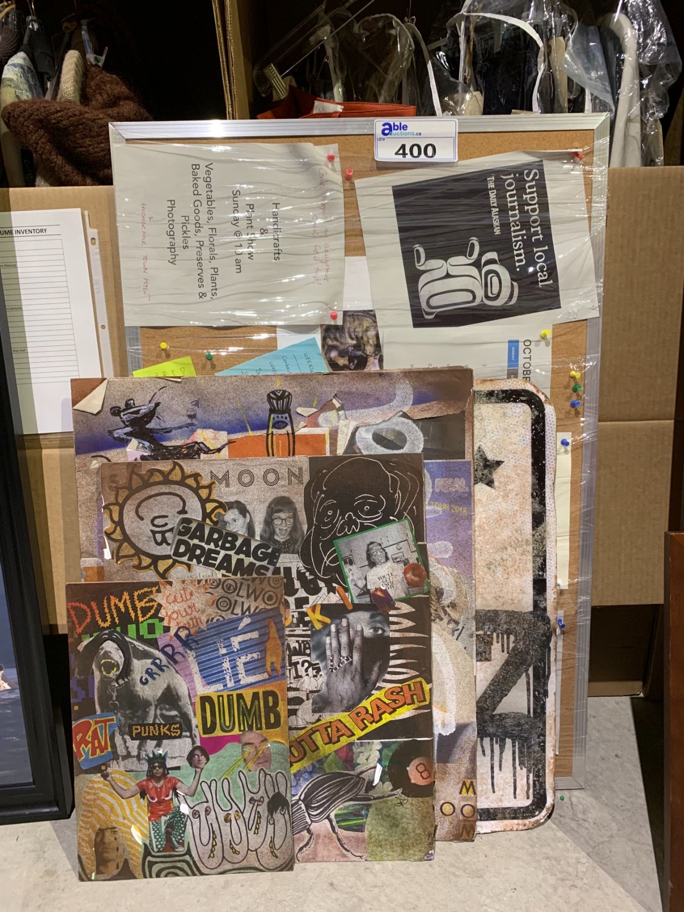 ASSORTED ART, ALASKA AK 47 SIGN AND CORKBOARD