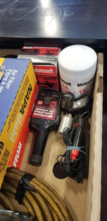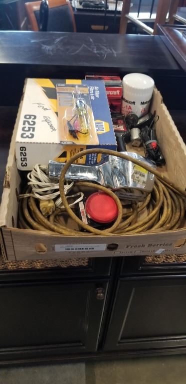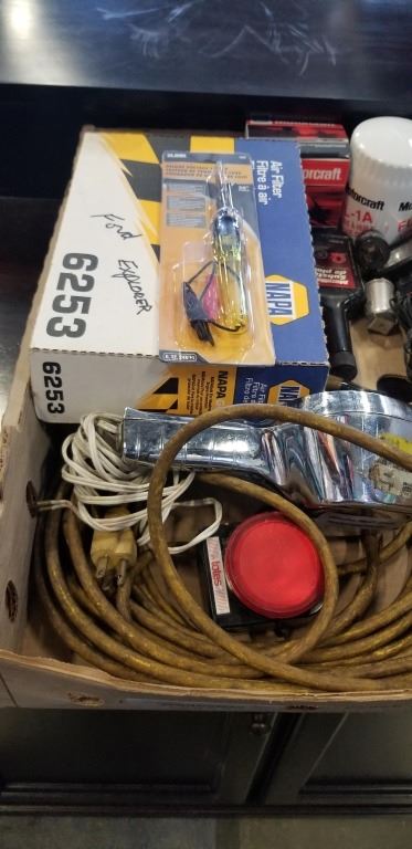 ASSORTED AUTOMOTIVE ITEMS INCLUDING VINTAGE SPOTLIGHT AND EXTENSION CORD