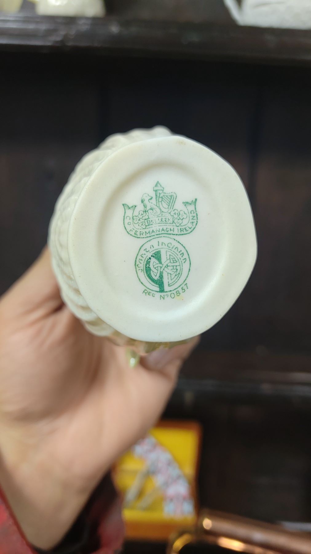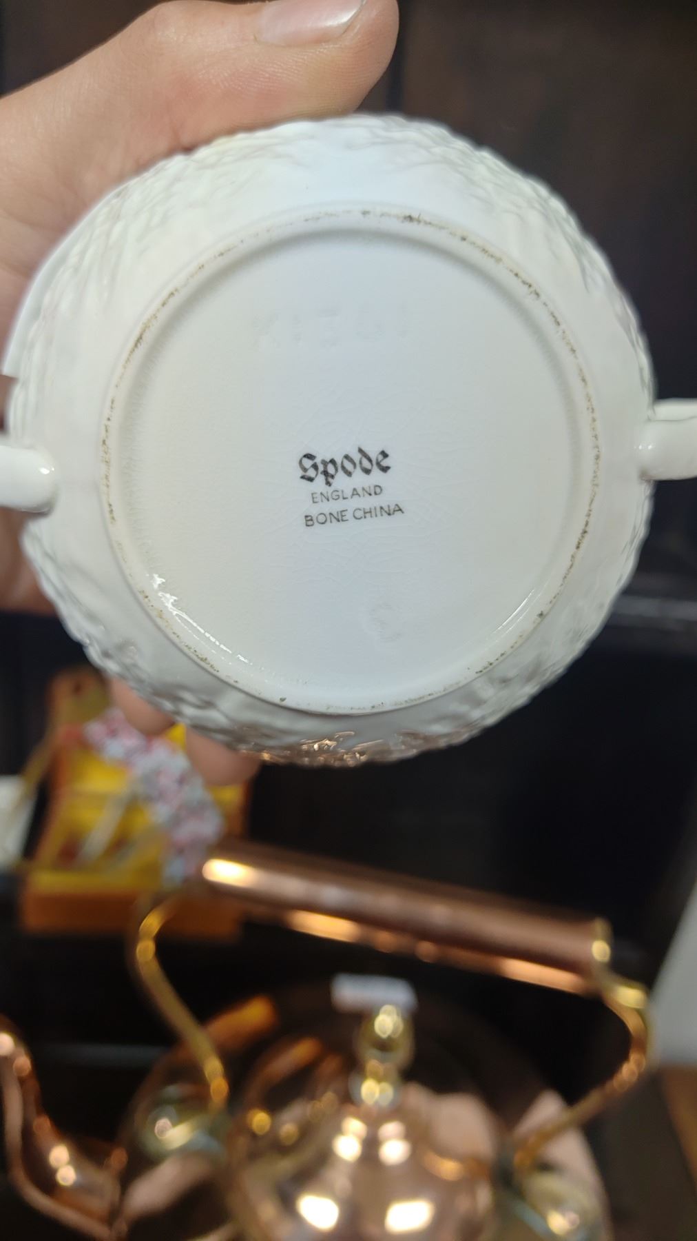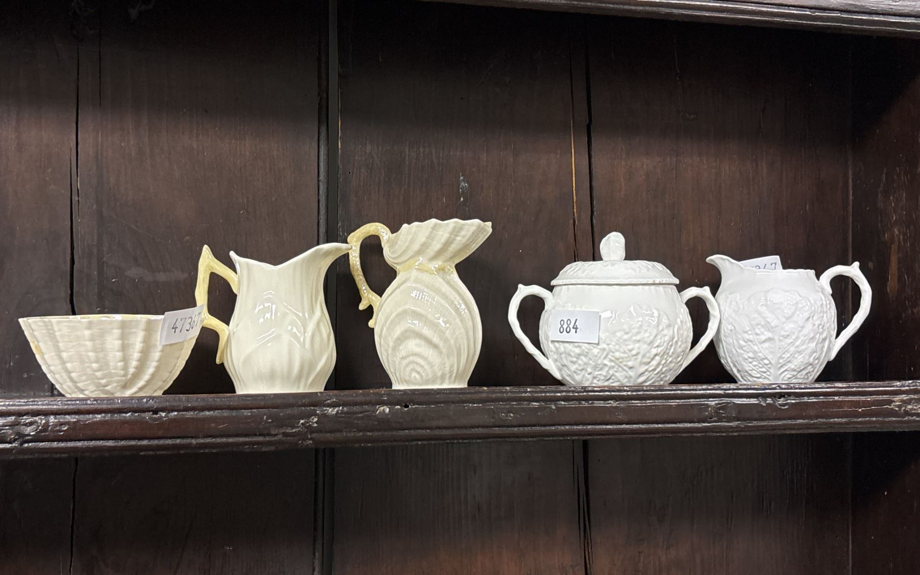 ASSORTED BONE CHINA INCLUDING; SPODE CREAM & SUGAR CUPS & BELLEEK BONE CHINA
