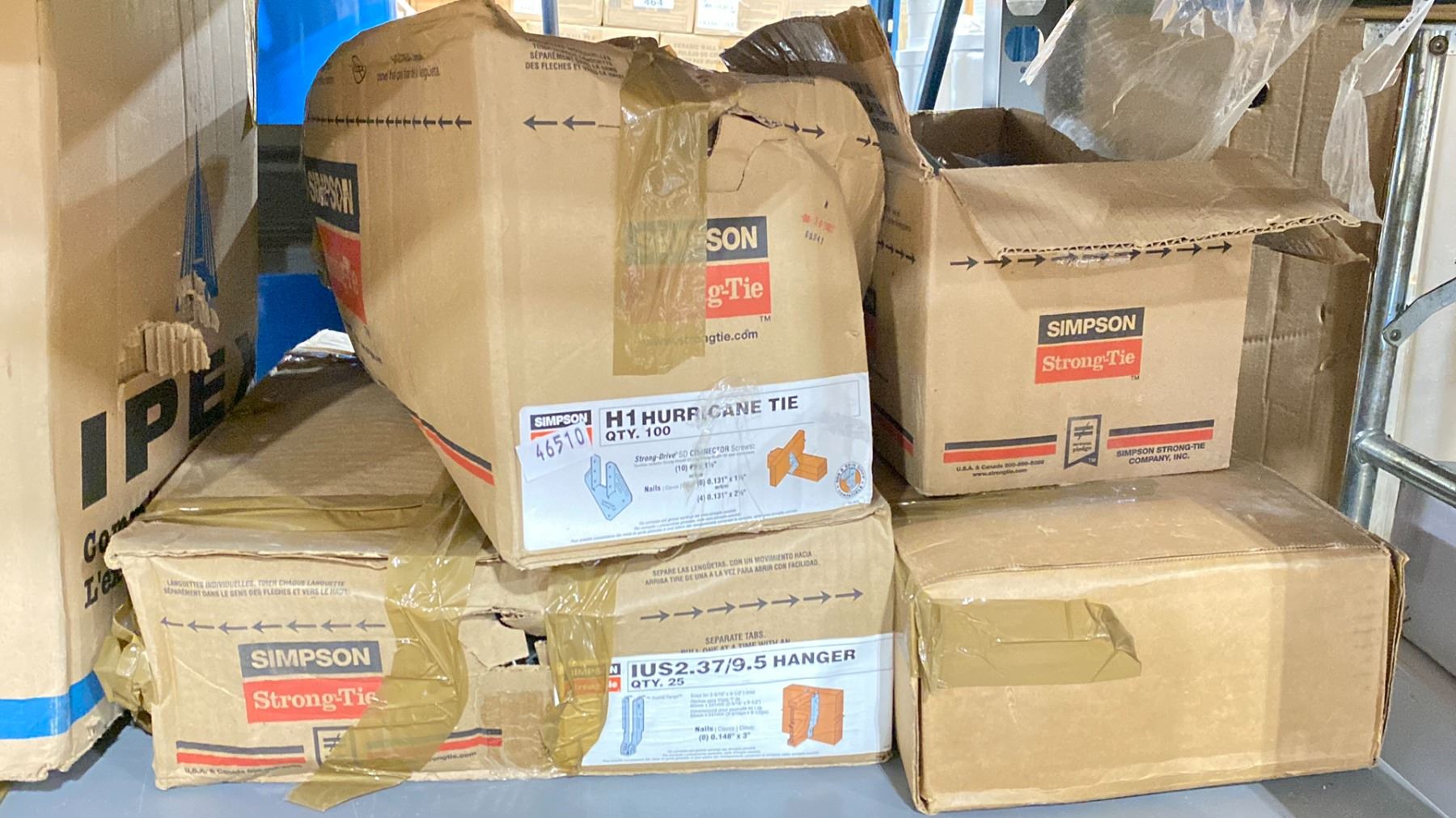 ASSORTED BOXES OF HOOKS, LIGHTING, & SIMPSON BRACKETS
