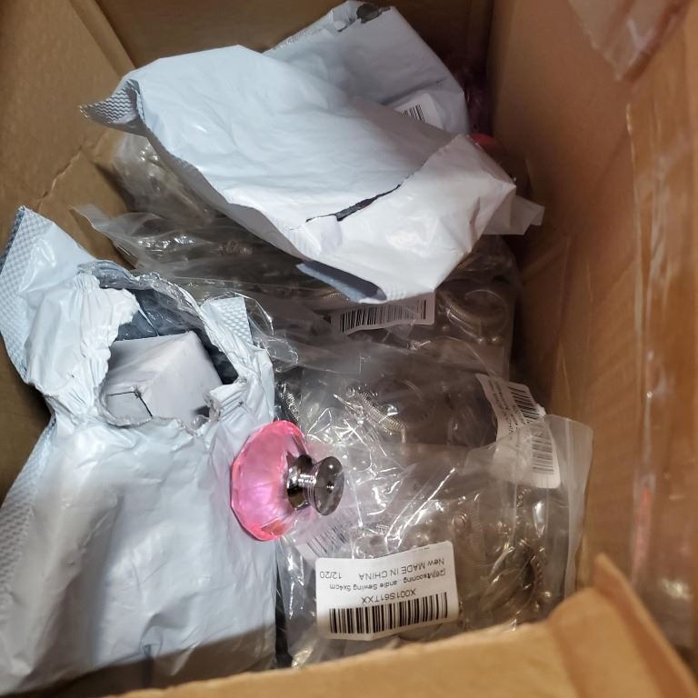 ASSORTED CABINET KNOBS AND REUSABLE SHOPPING BAGS
