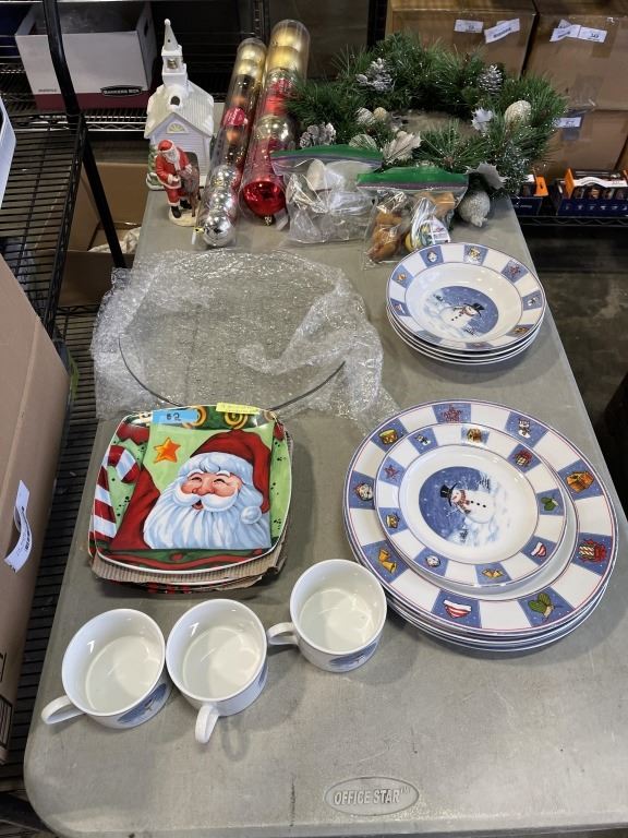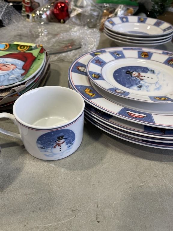 ASSORTED CHRISTMAS DECOR, PLATES AND SERVING ITEMS ETC