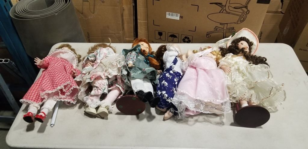ASSORTED COLLECTION OF VINTAGE AND ANTIQUE DOLLS, SOME PORCELAIN AND WITH ACCESSORIES