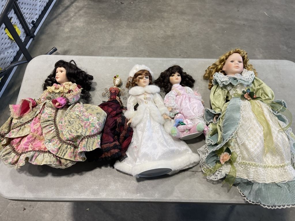 ASSORTED COLLECTION OF VINTAGE AND ANTIQUE DOLLS, SOME PORCELAIN AND WITH ACCESSORIES