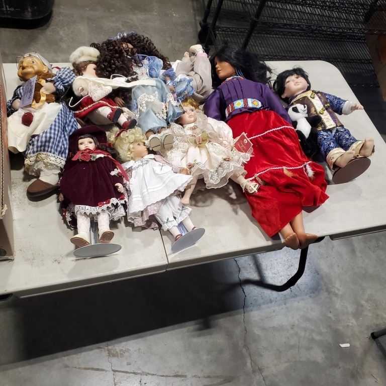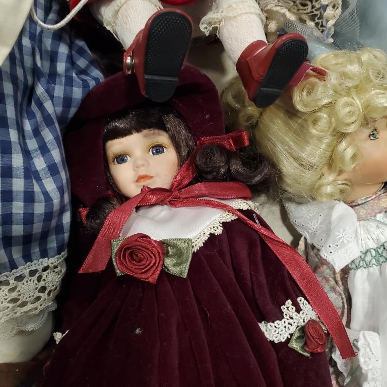 ASSORTED COLLECTION OF VINTAGE AND ANTIQUE DOLLS, SOME PORCELAIN AND WITH ACCESSORIES