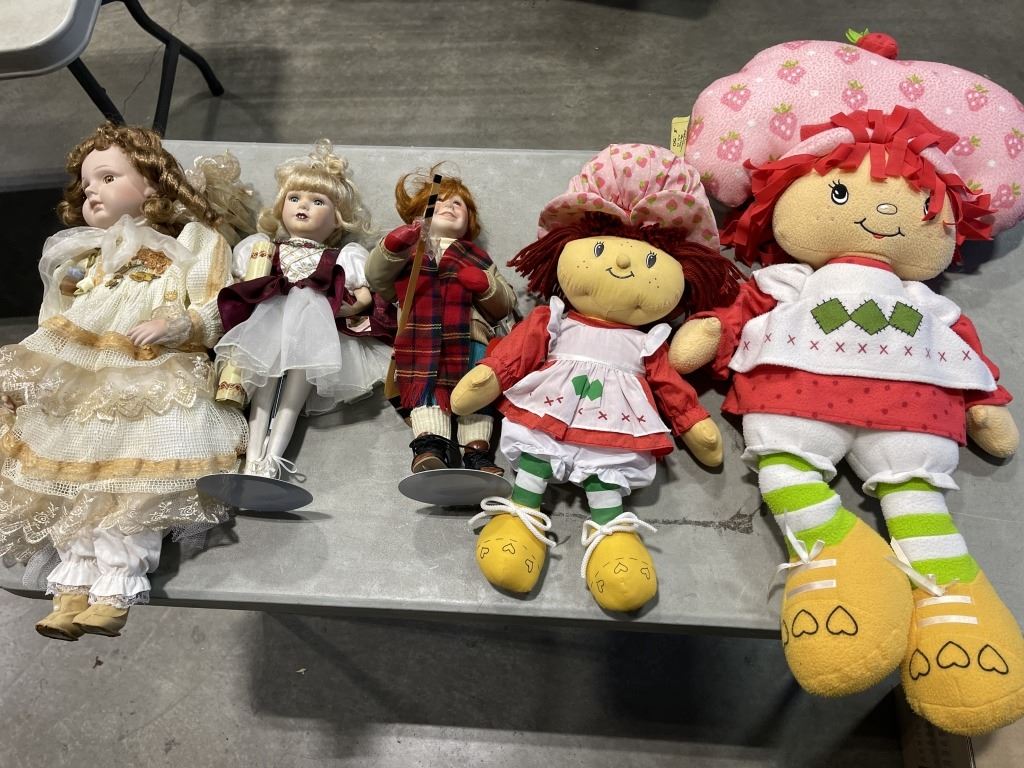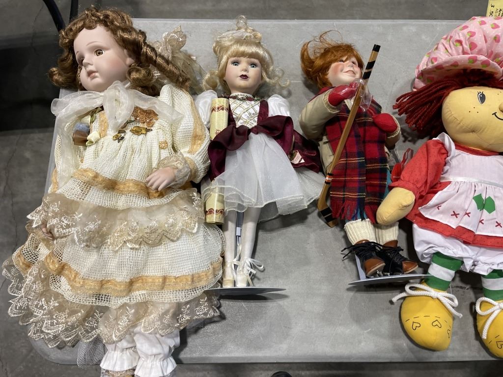 ASSORTED COLLECTION OF VINTAGE AND ANTIQUE DOLLS, SOME PORCELAIN AND WITH ACCESSORIES