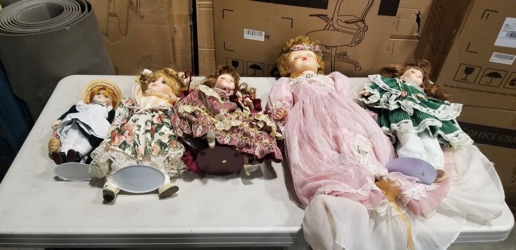 ASSORTED COLLECTION OF VINTAGE AND ANTIQUE DOLLS, SOME PORCELAIN AND WITH ACCESSORIES