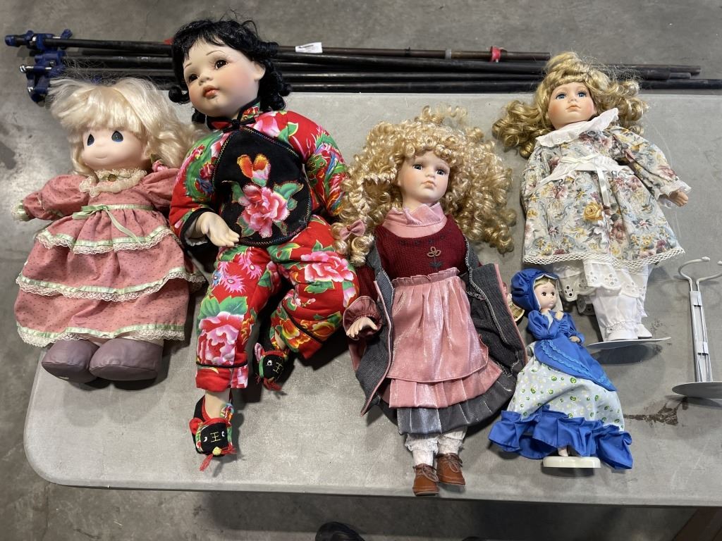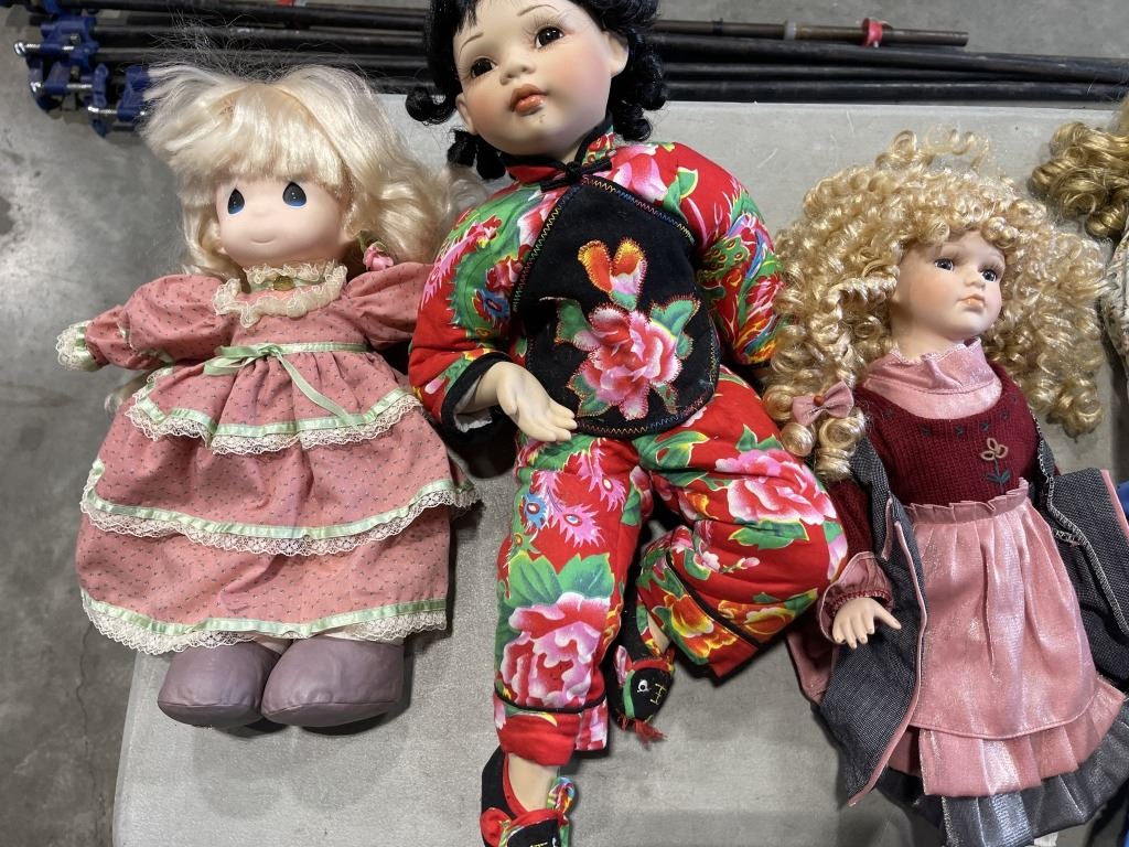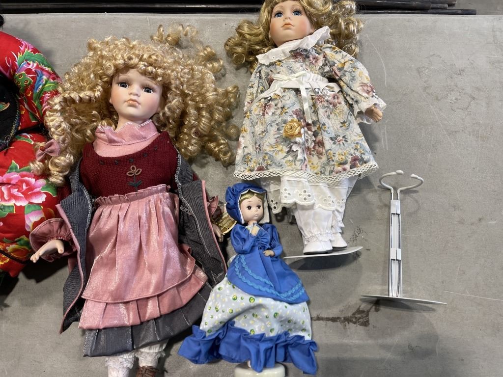 ASSORTED COLLECTION OF VINTAGE AND ANTIQUE DOLLS, SOME PORCELAIN AND WITH ACCESSORIES