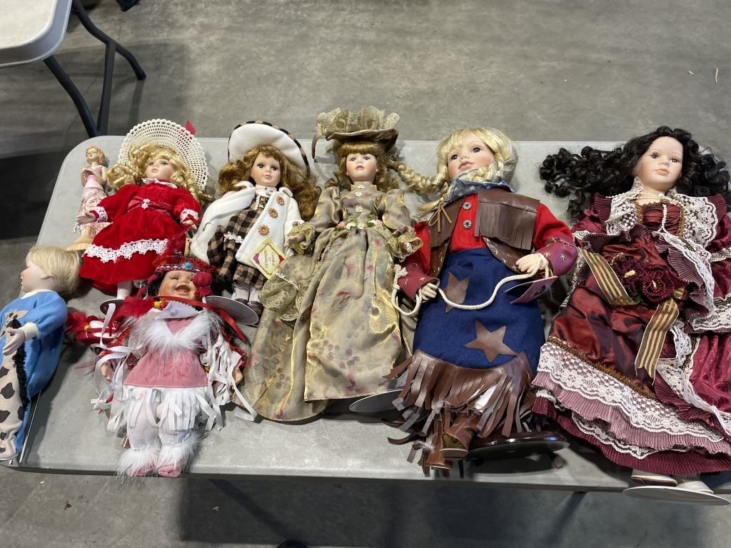 ASSORTED COLLECTION OF VINTAGE AND ANTIQUE DOLLS, SOME PORCELAIN AND WITH ACCESSORIES