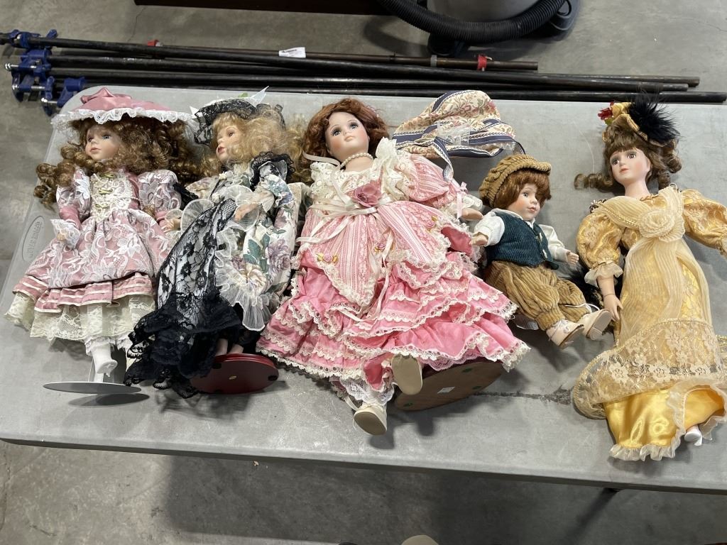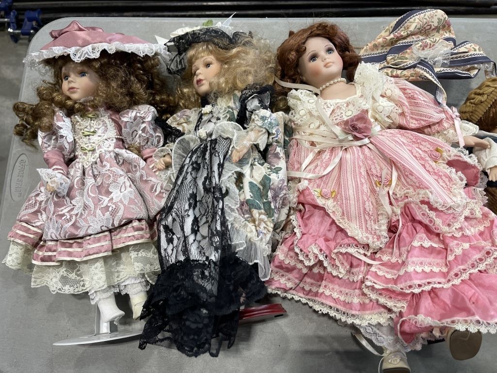 ASSORTED COLLECTION OF VINTAGE AND ANTIQUE DOLLS, SOME PORCELAIN AND WITH ACCESSORIES
