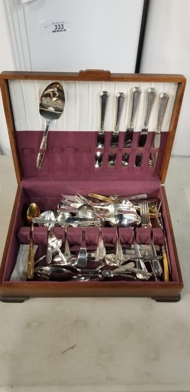 ASSORTED CUTLERY IN CANTEEN INCLUDING BIRKS STERLING KNIVES AND ROGERS TRIVET