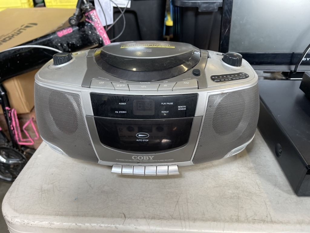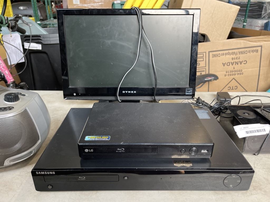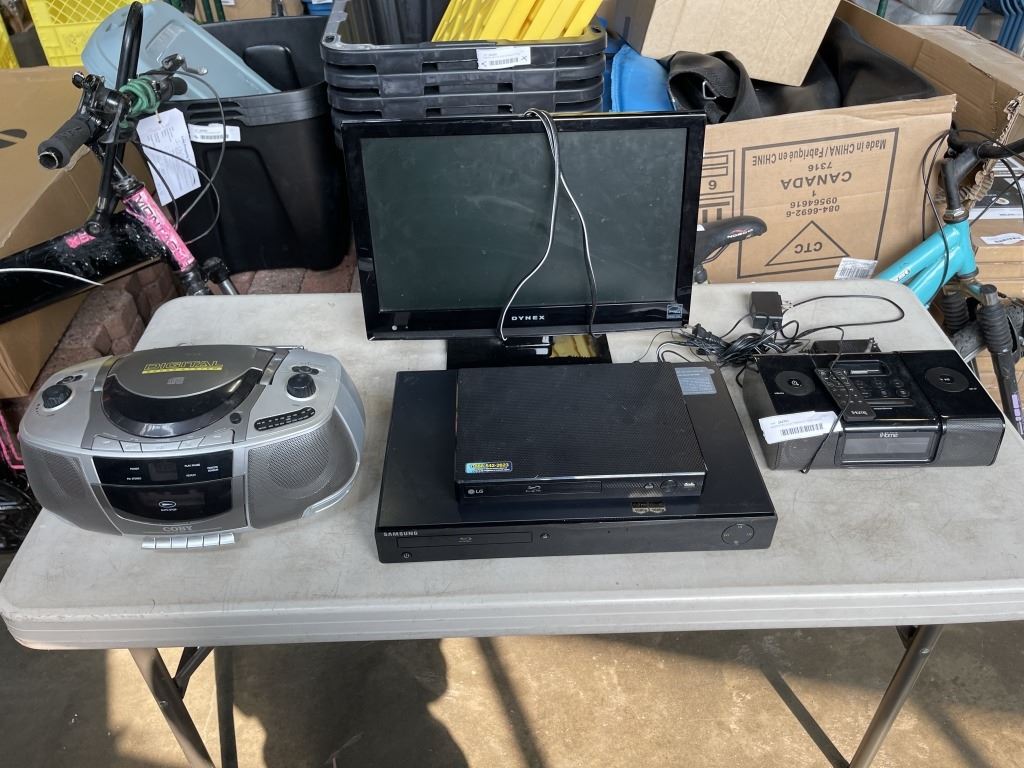 ASSORTED ELECTRONICS, IPOD DOCK, BOOBOX, DVD PLAYERS AND MONITOR