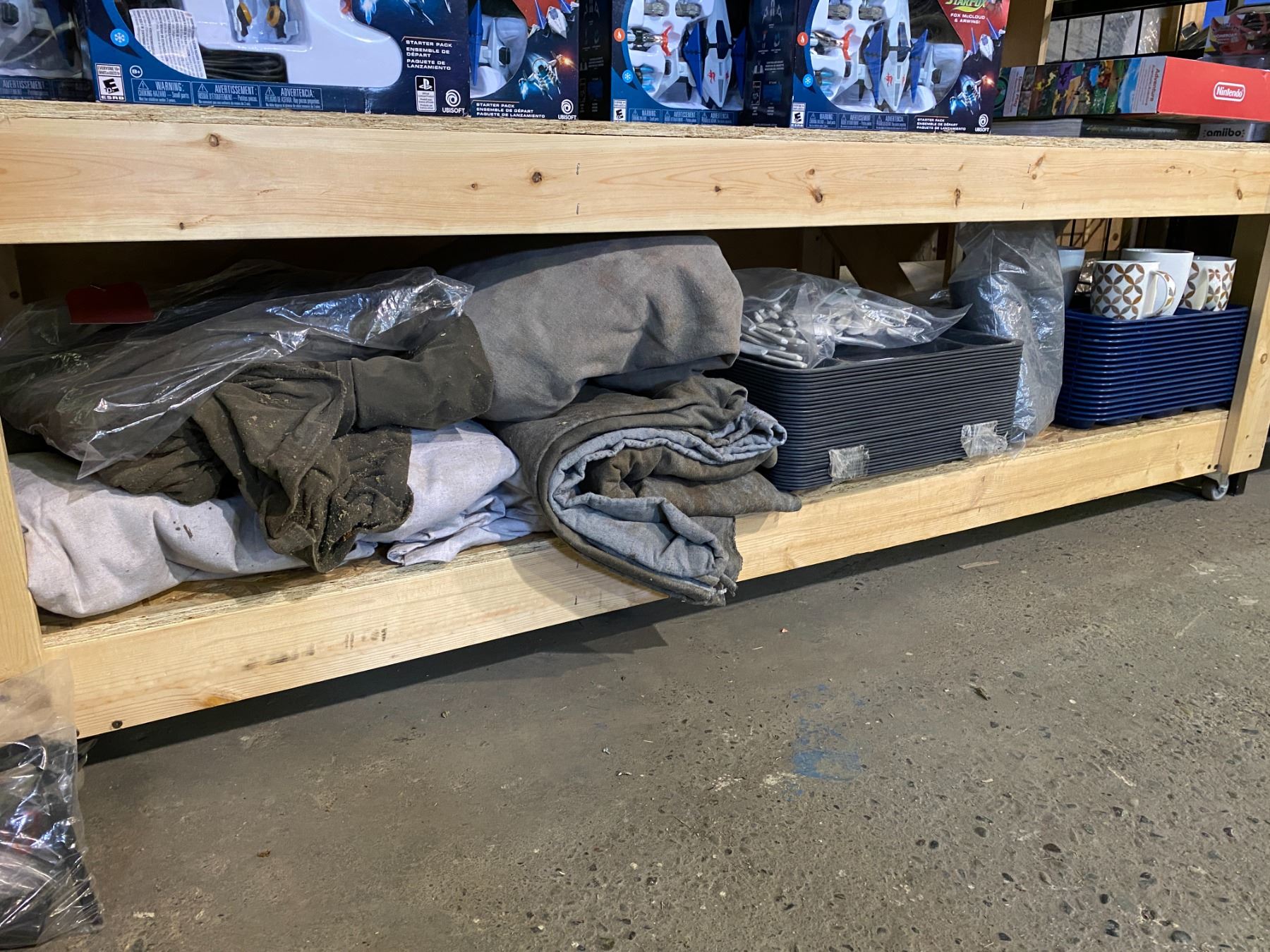 ASSORTED FOOD TRAYS, CUPS, BLANKETS, & UTENSILS