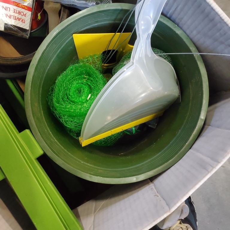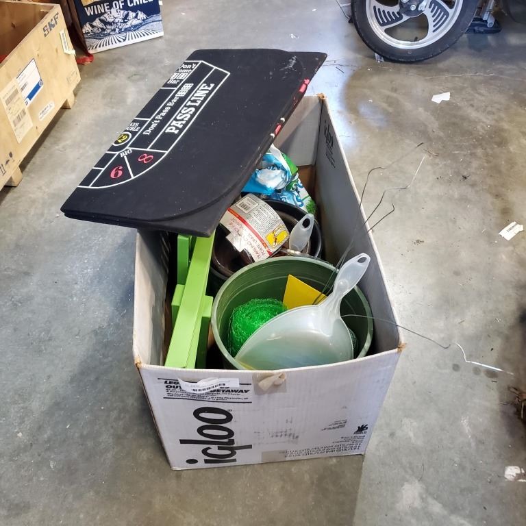 ASSORTED GARDEN ITEMS, FOLDING SIDE TABLE, POKER MATT ETC