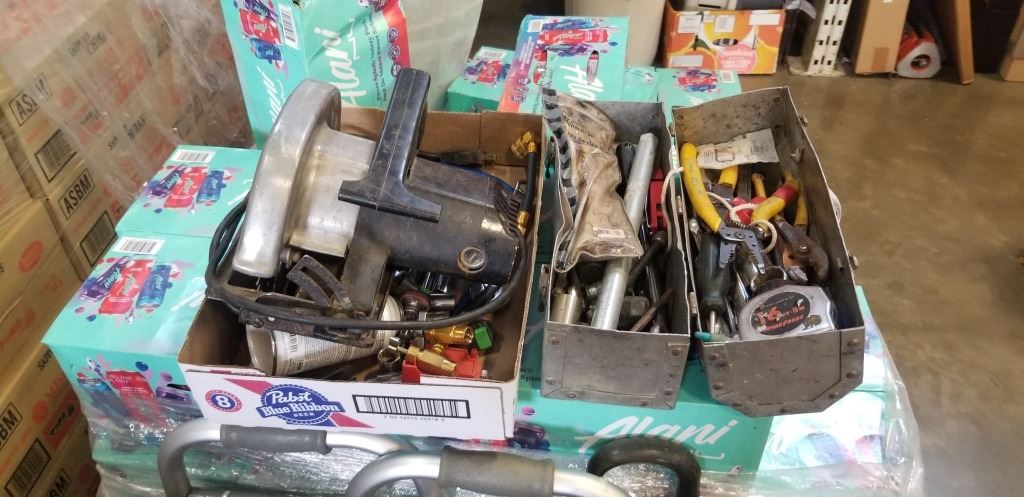 ASSORTED HAND AND SHOP TOOLS, SOCKETS, CIRCULAR SAW, ETC