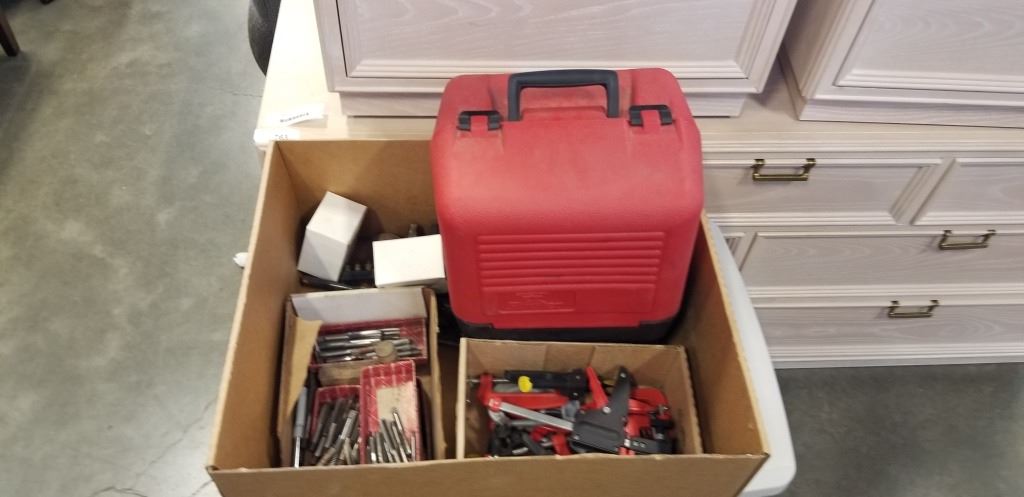 ASSORTED HAND TOOLS, ROUTER AND TAPS