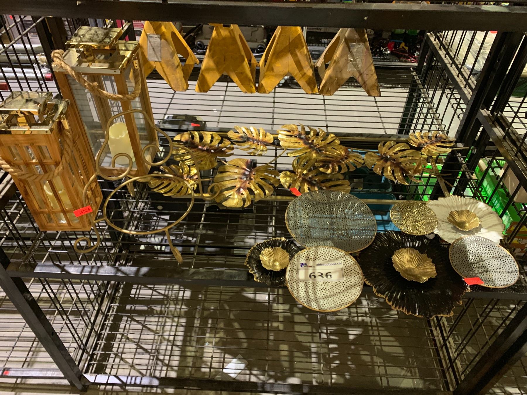 ASSORTED HOME DECOR ITEMS; LANTERNS, WALL ART PIECES, AND METAL STAND
