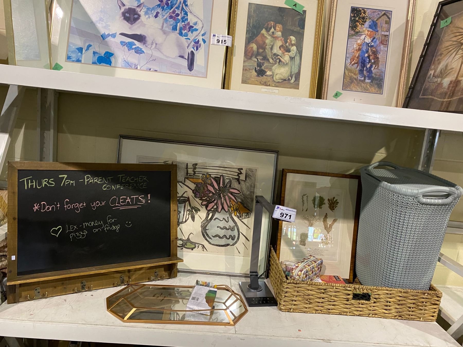 ASSORTED HOME DECOR, LED LIGHT, LAUNDRY BASKET, FRAMED ART, COAT/WRITING BOARD, & MORE