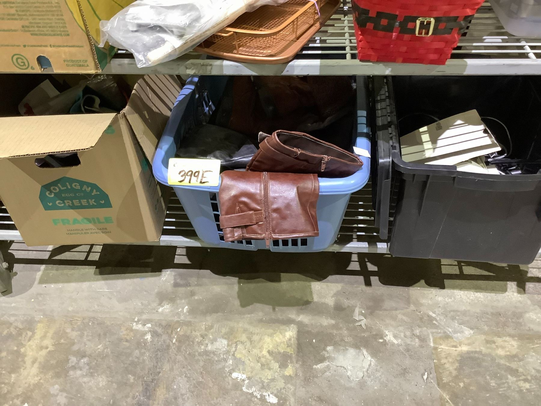 ASSORTED ITEMS INCLUDING; BOOTS & SHOES, LAUNDRY BASKET, ASSORTED CORDS & MORE