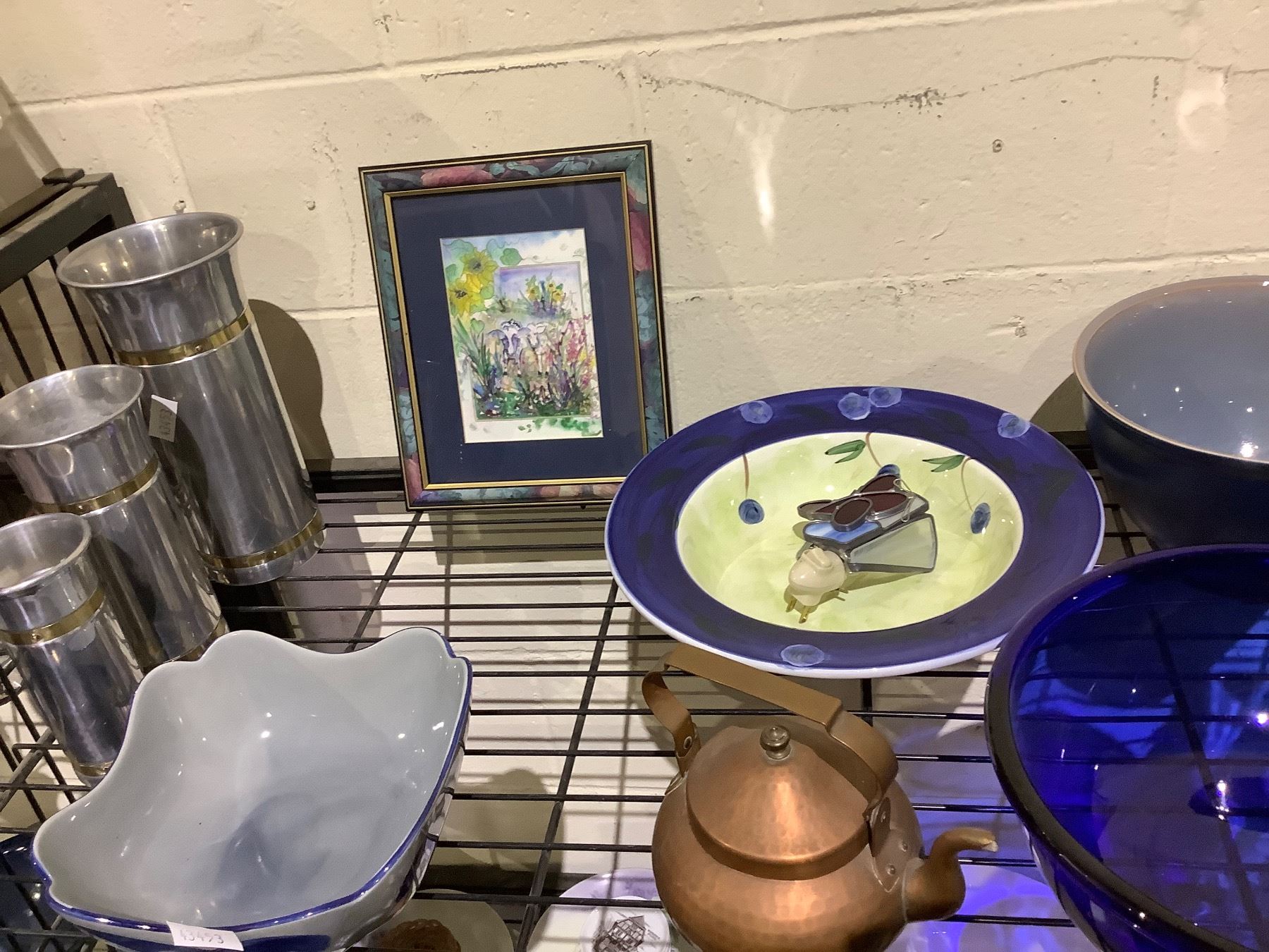 ASSORTED ITEMS INCLUDING; BOWLS, VASES, COPPER TEAPOT & MORE
