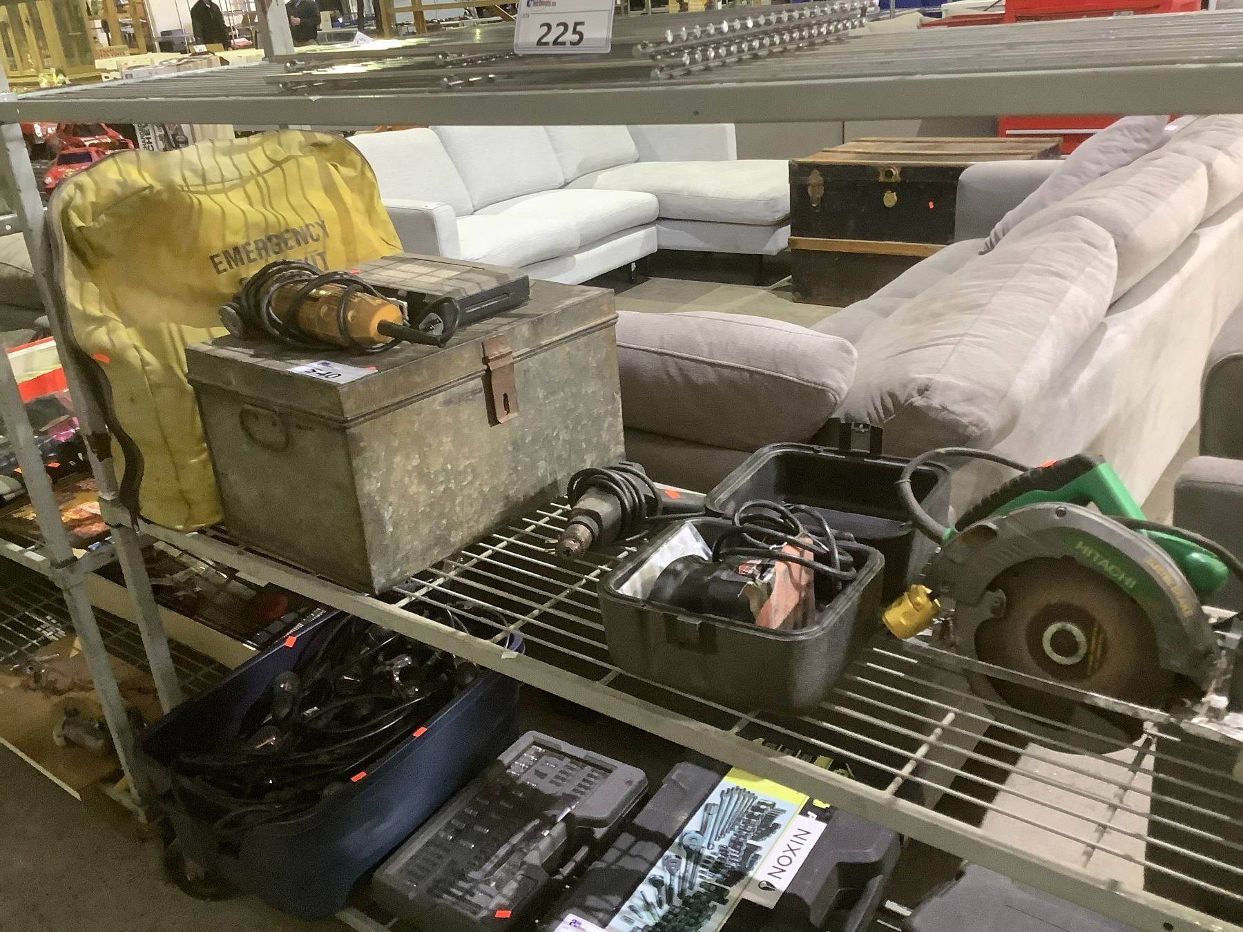 ASSORTED ITEMS INCLUDING; EMERGENCY SPILL KIT, DEWALT GRINDER, HITACHI CIRCULAR SAW & MORE