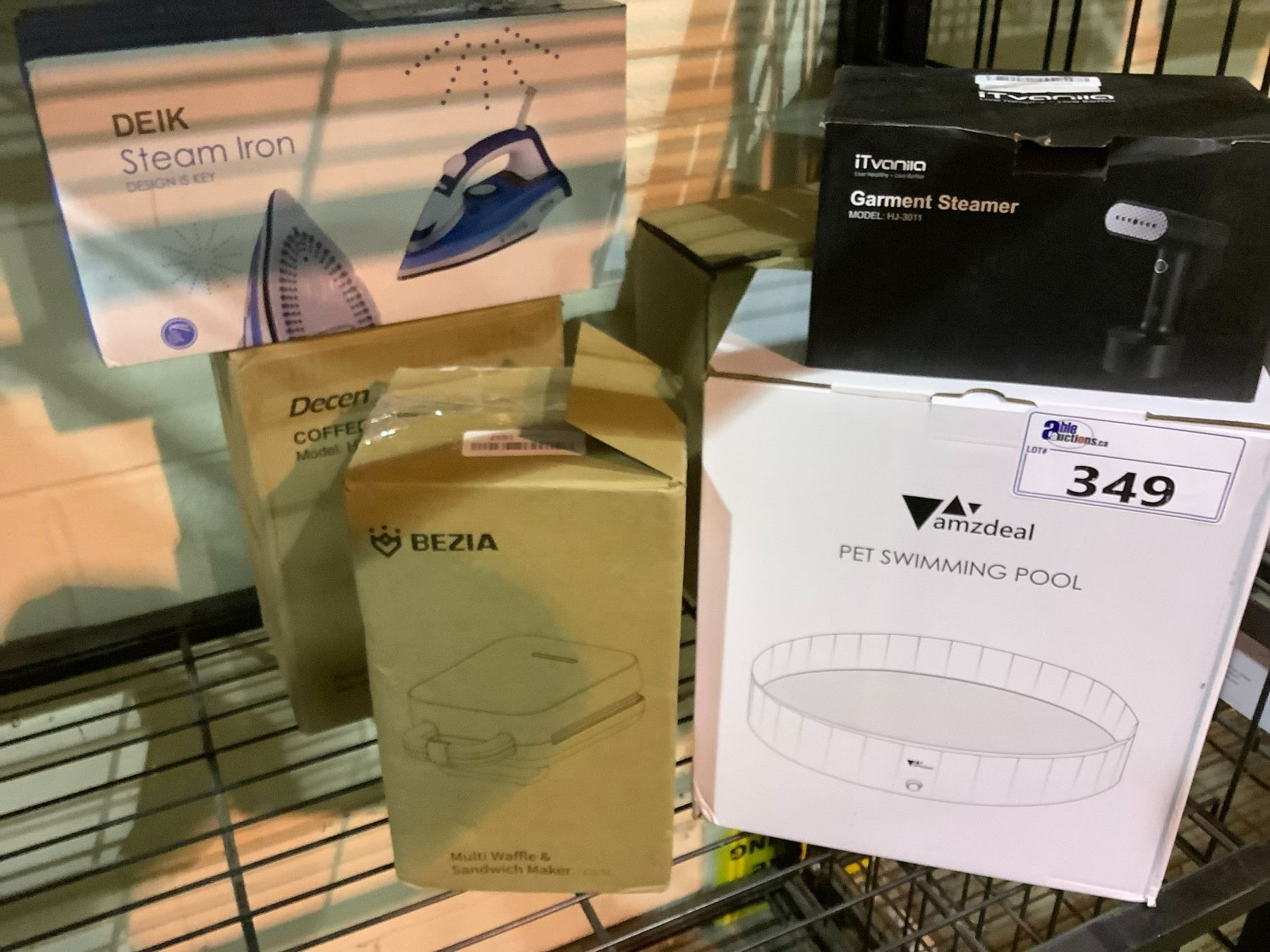 ASSORTED ITEMS INCLUDING; GARMENT STEAMER, MULTI WAFFLE & SANDWICH MAKER, STEAM IRON, COFFEE