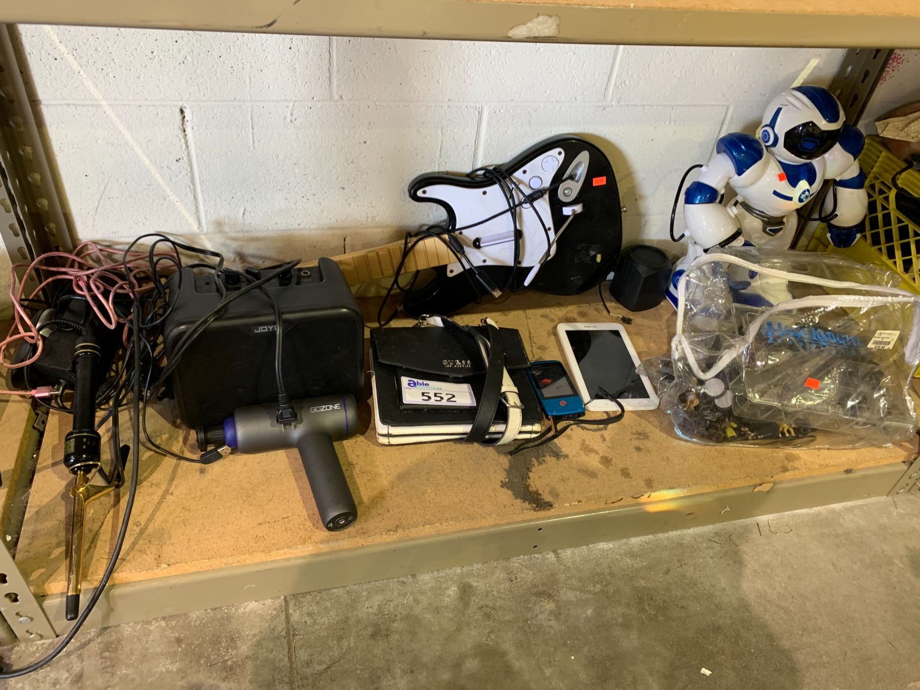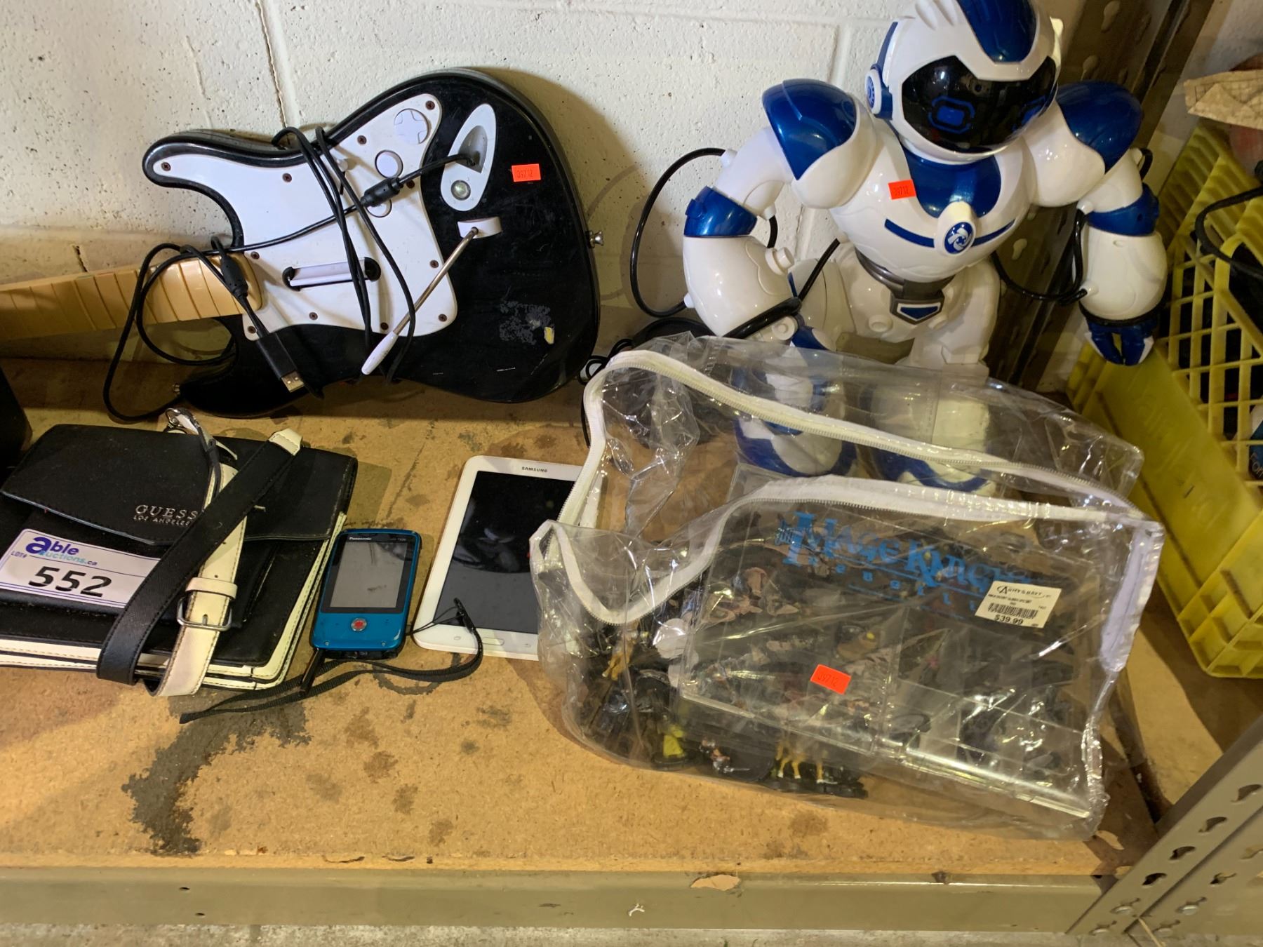 ASSORTED ITEMS INCLUDING; GUITAR HERO GUITAR, MASSAGER, TABLET & MORE