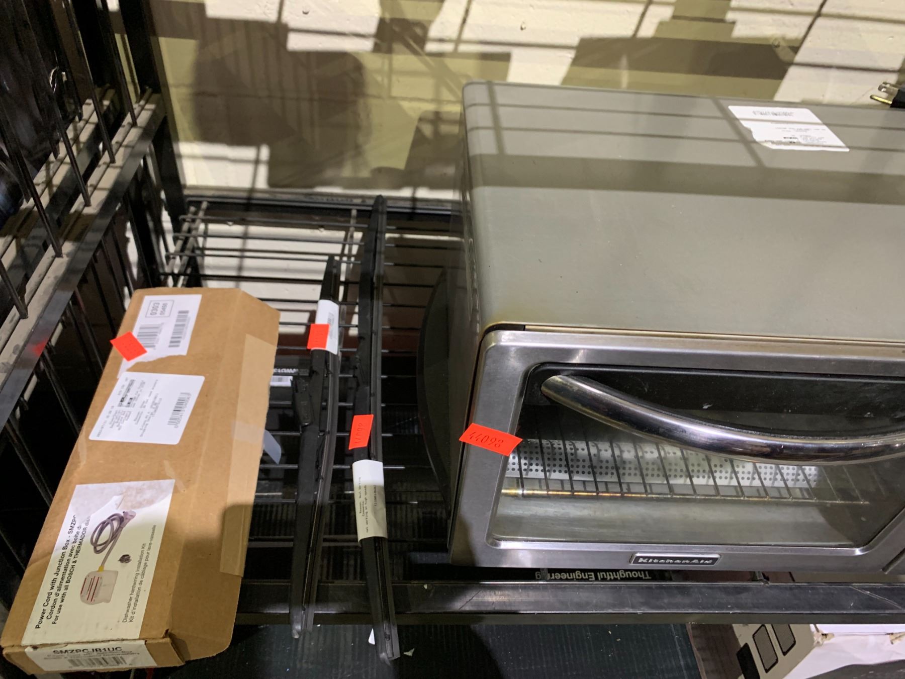 ASSORTED ITEMS INCLUDING; KITCHENAID TOASTER OVEN, NINJA DUAL BASKET FRYER, WINDSHIELD WIPERS & POWER CORD WITH JUNCTION BOX