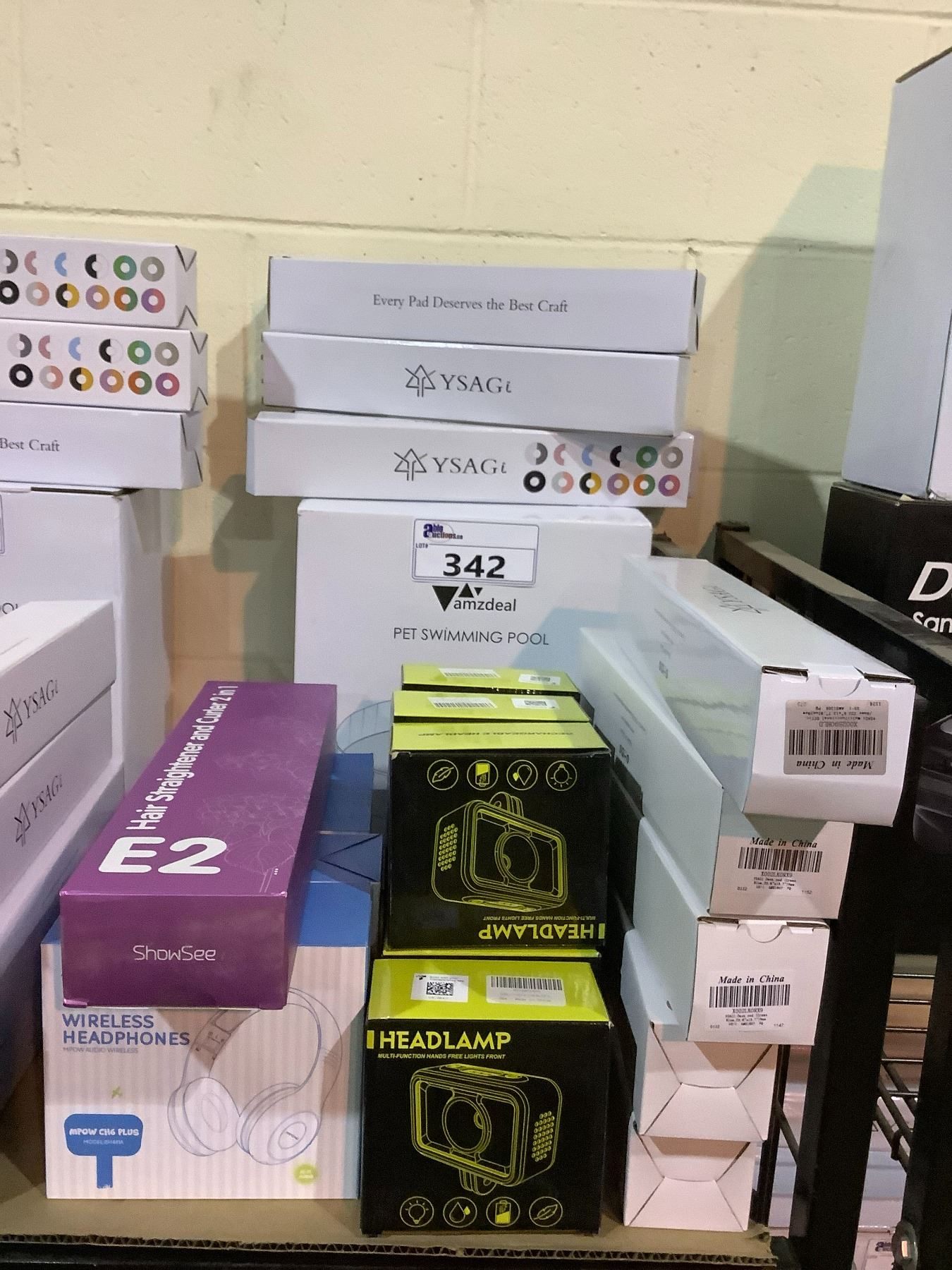 ASSORTED ITEMS INCLUDING; MPOW WIRELESS HEADPHONES, HEADLAMPS, HAIR STRAIGHTENER/CURLER, DESK MATS & PET SWIMMING POOL