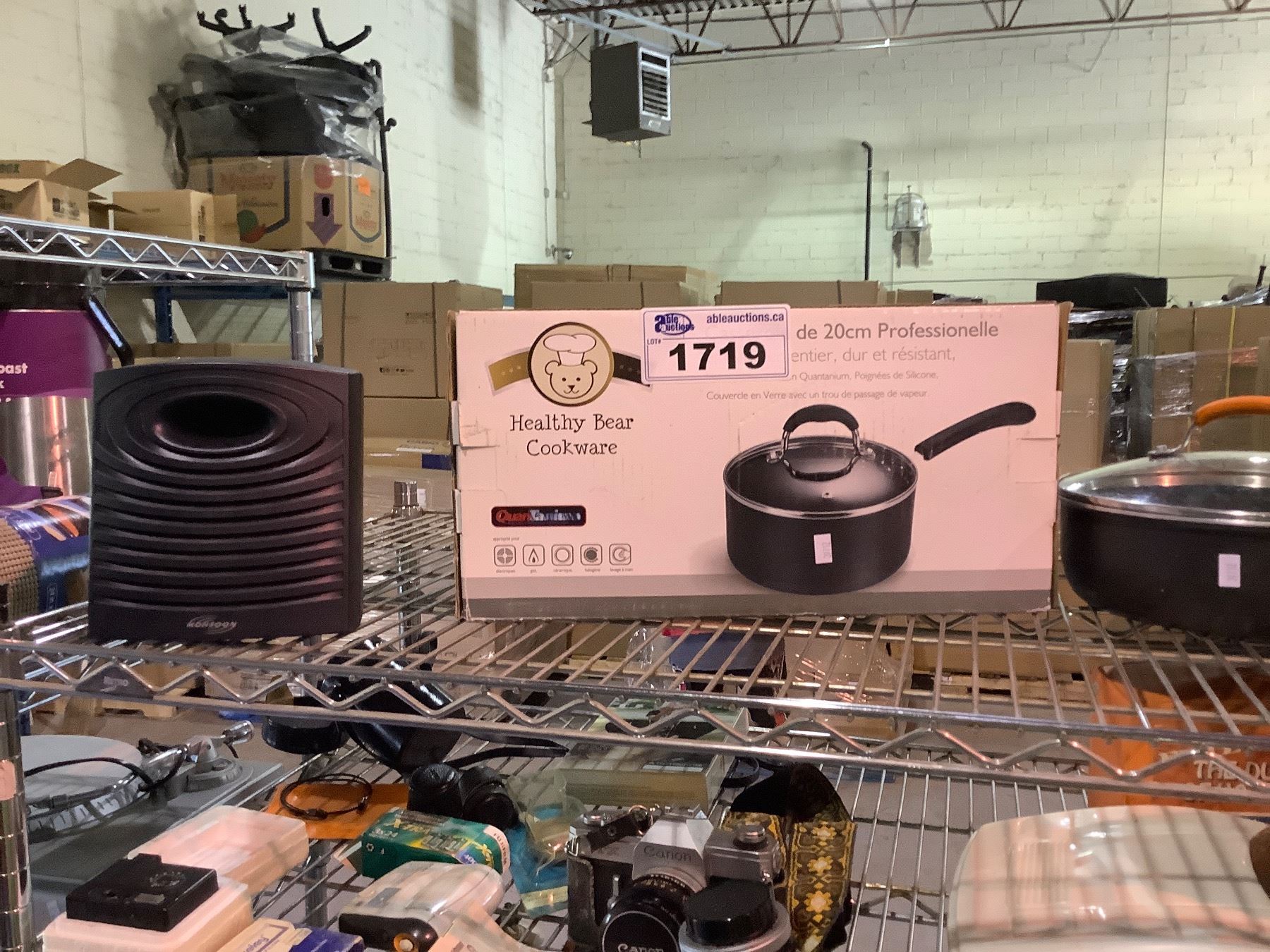 ASSORTED ITEMS INCLUDING; POTS, SPEAKER, DIGITAL BLOOD PRESSURE MONITOR & MORE