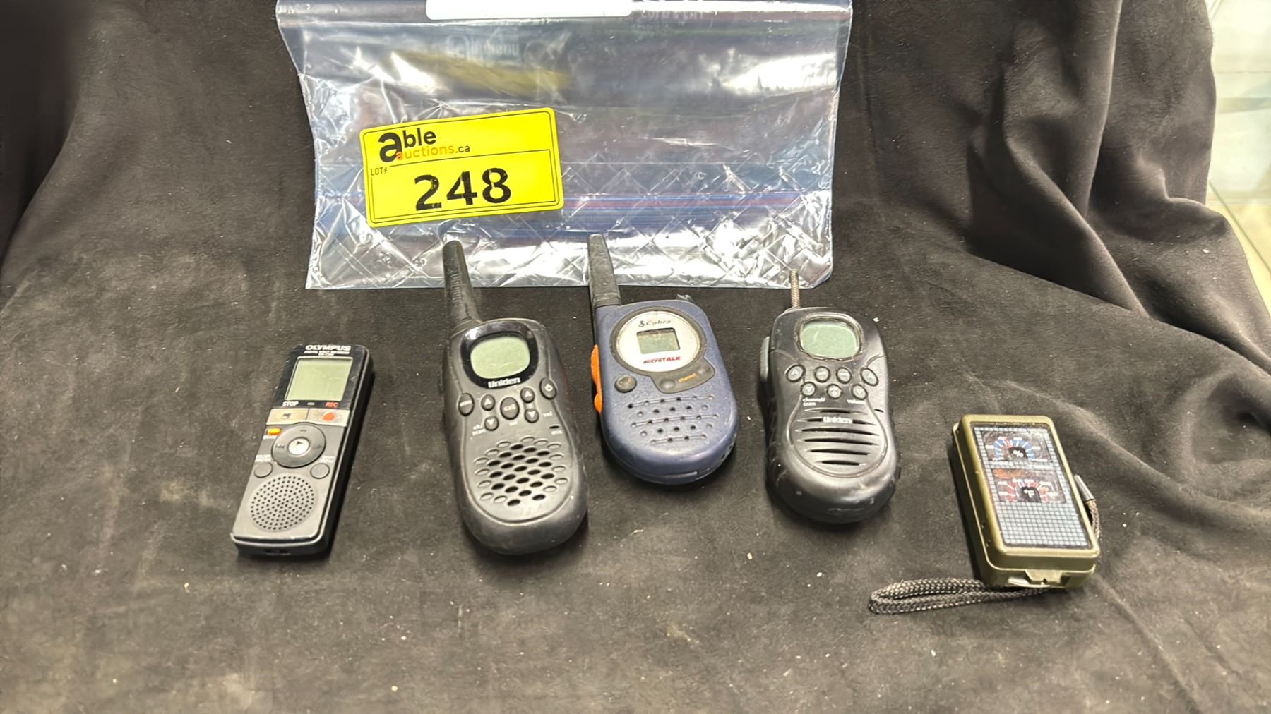 ASSORTED ITEMS INCLUDING; RADIOS, VOICE RECORDER, COMPASS & MORE