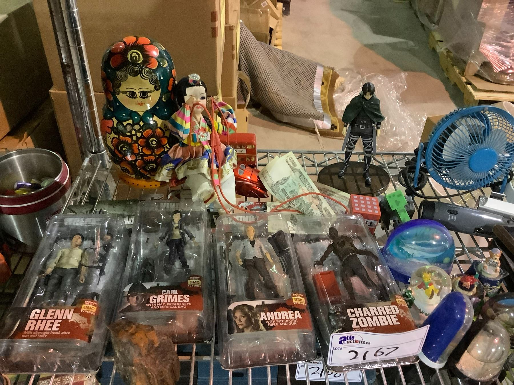 ASSORTED ITEMS INCLUDING; THE WALKING DEAD FIGURES, POKEMON CARDS, SNOW GLOBES & MORE