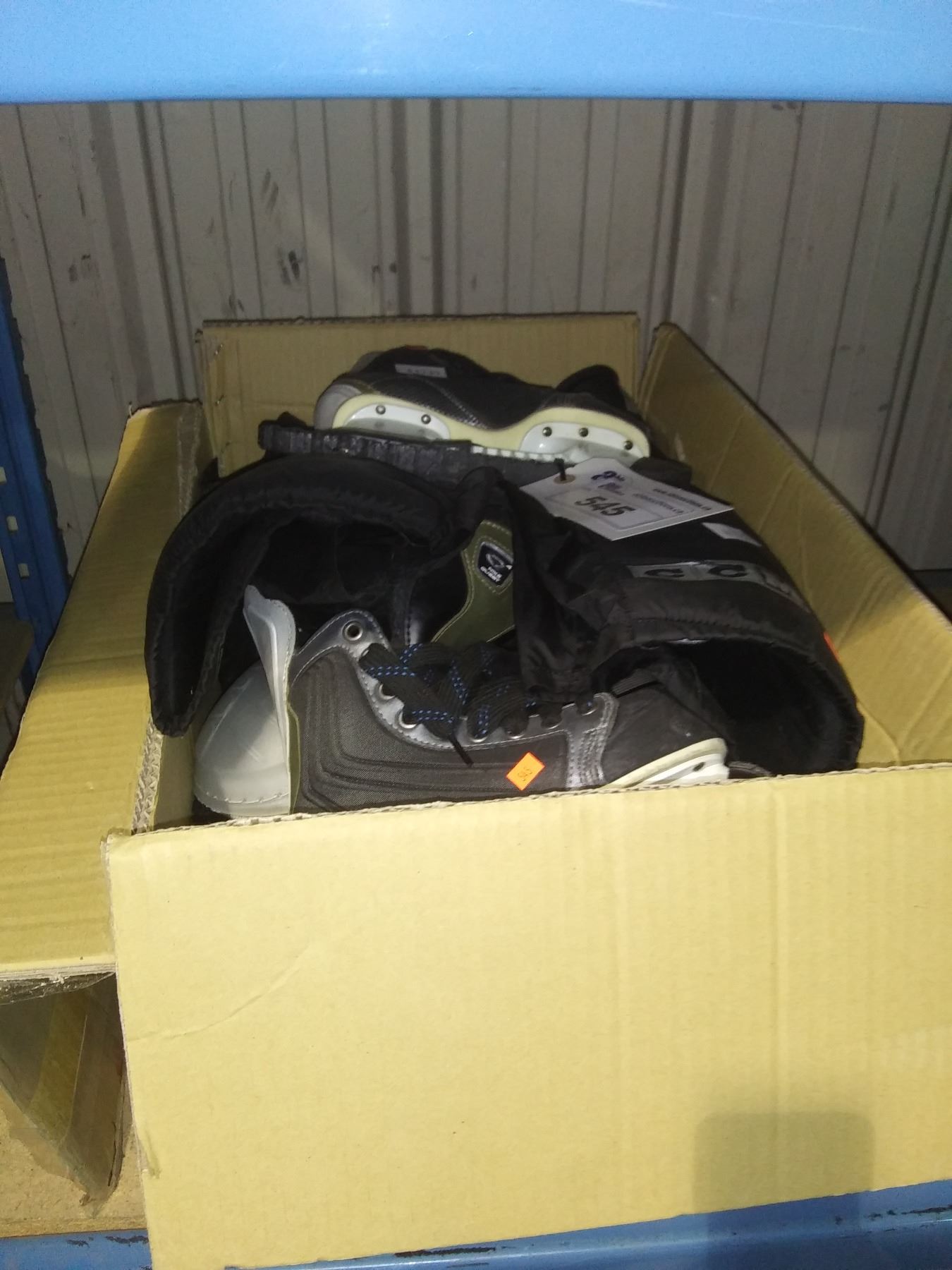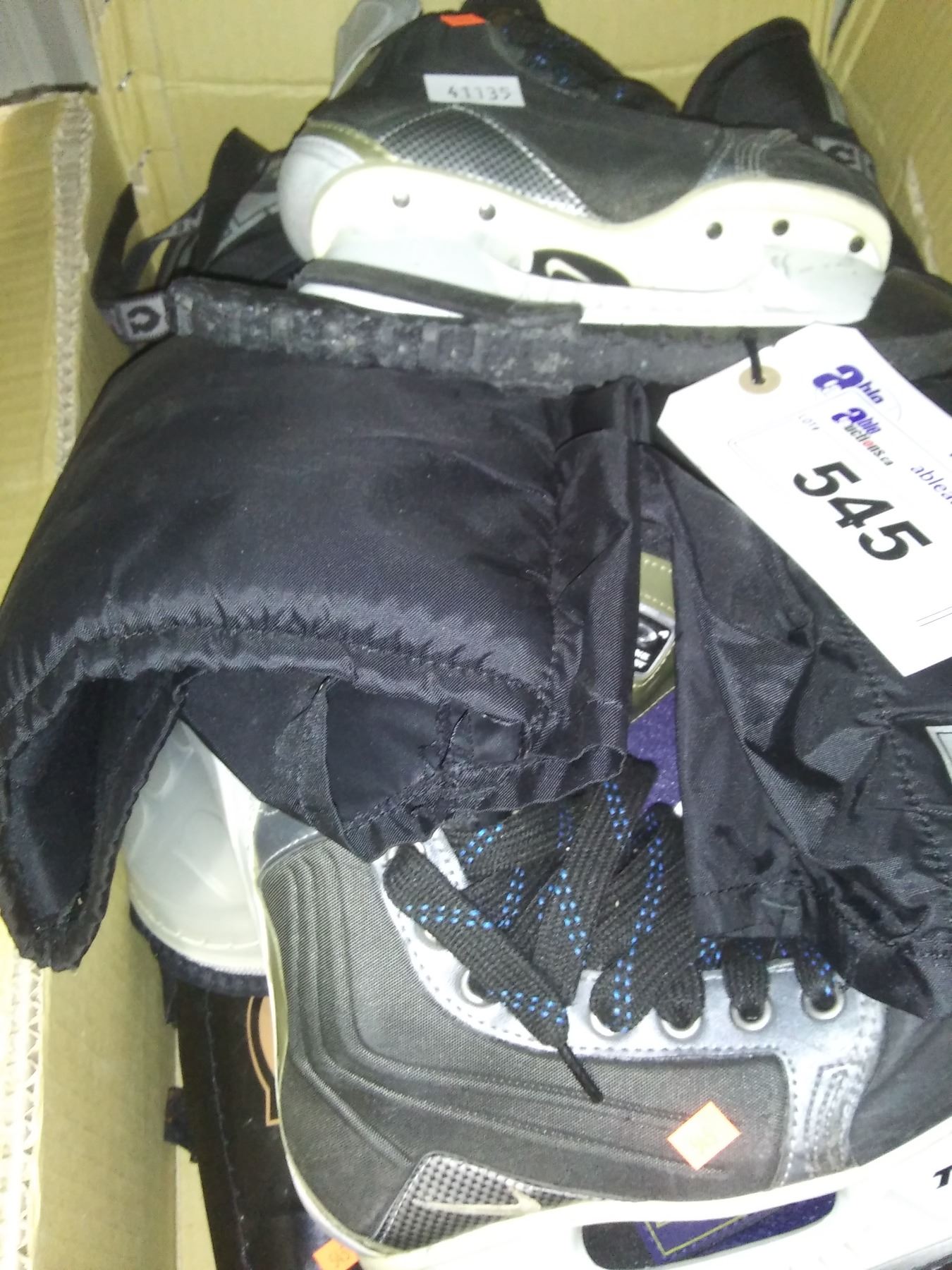 ASSORTED JR. HOCKEY EQUIPMENT INCLUDING: PAIR OF ICE SKATES SIZE 3D, PAIR OF GLOVES, PAIR OF SHIN