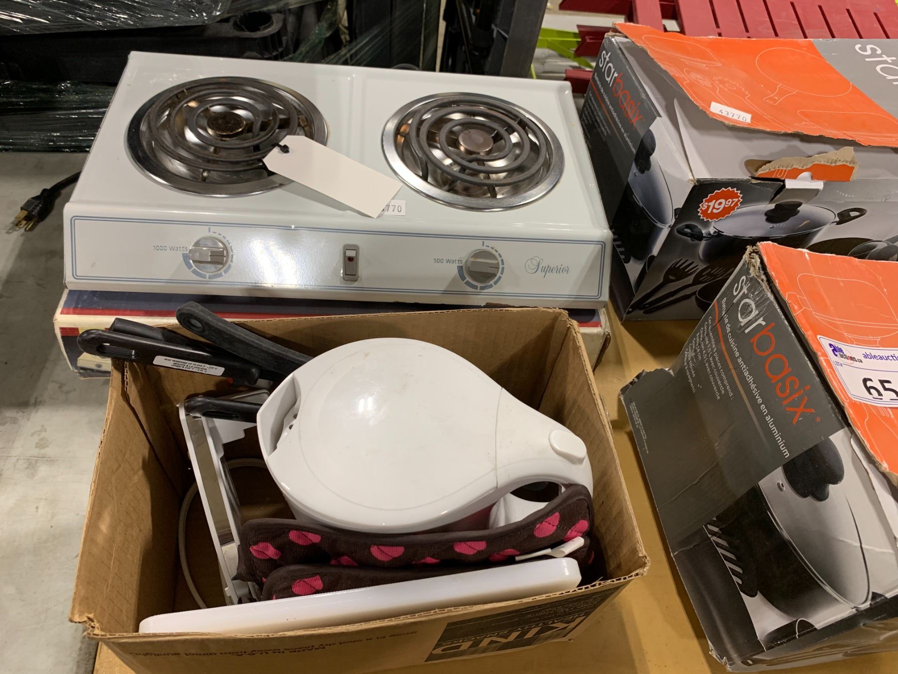 ASSORTED KITCHEN ITEMS: STARBASIX NON-STICK ALUMINIUM COOKWARE SETS, SUPERIOR STOVE BURNER AND OTHER UTENSILS