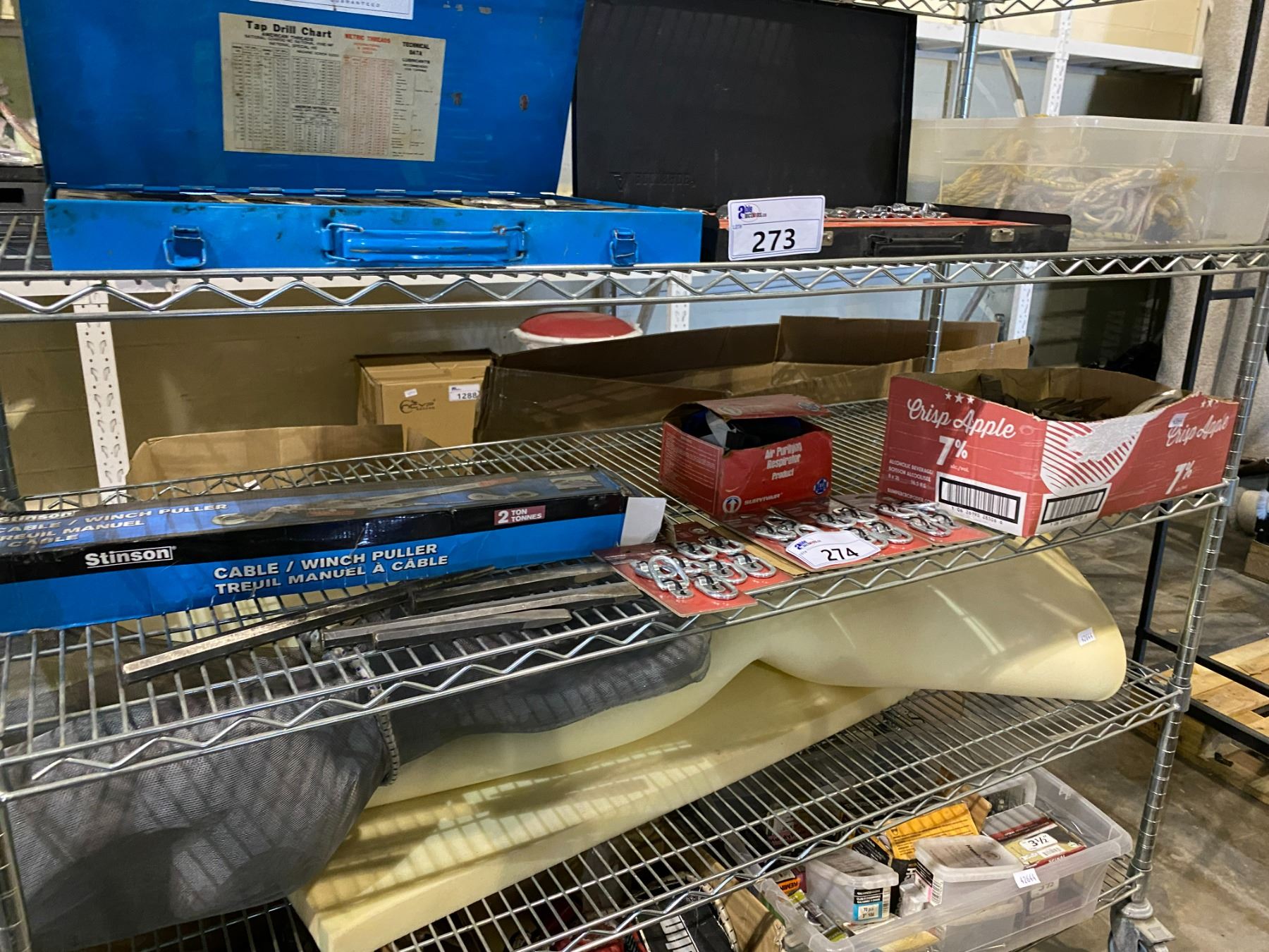 ASSORTED METAL FILES, CABLE/WINCH PULLER (2TON), 5 HUSKY STAINLESS STEEL WIRE RING ANCHOR POINTS, AND MORE