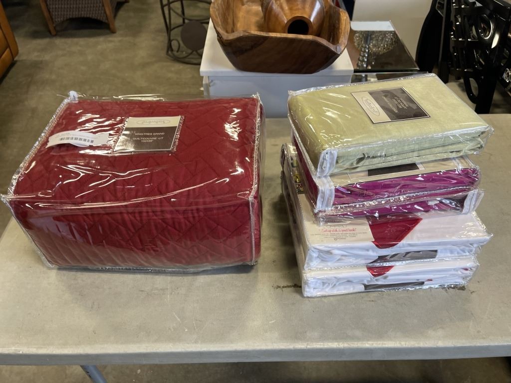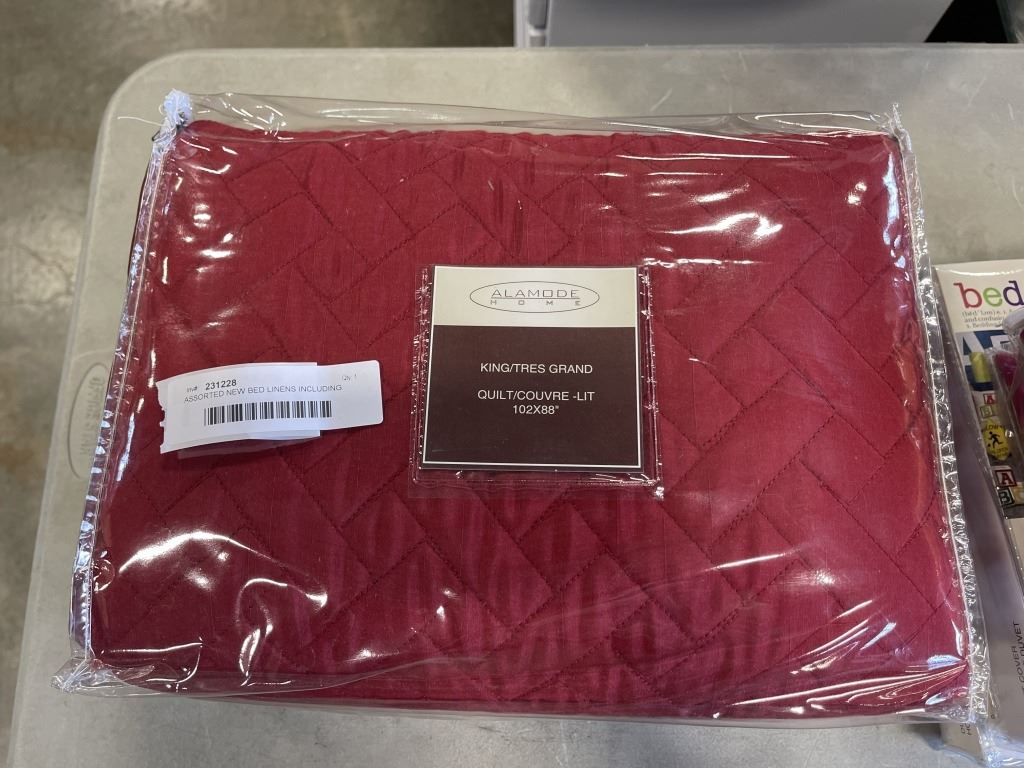 ASSORTED NEW BED LINENS INCLUDING KINGSIZE QUILT
