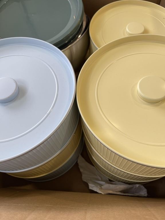 ASSORTED NEW STACKING METAL TINS AND CONTAINERS