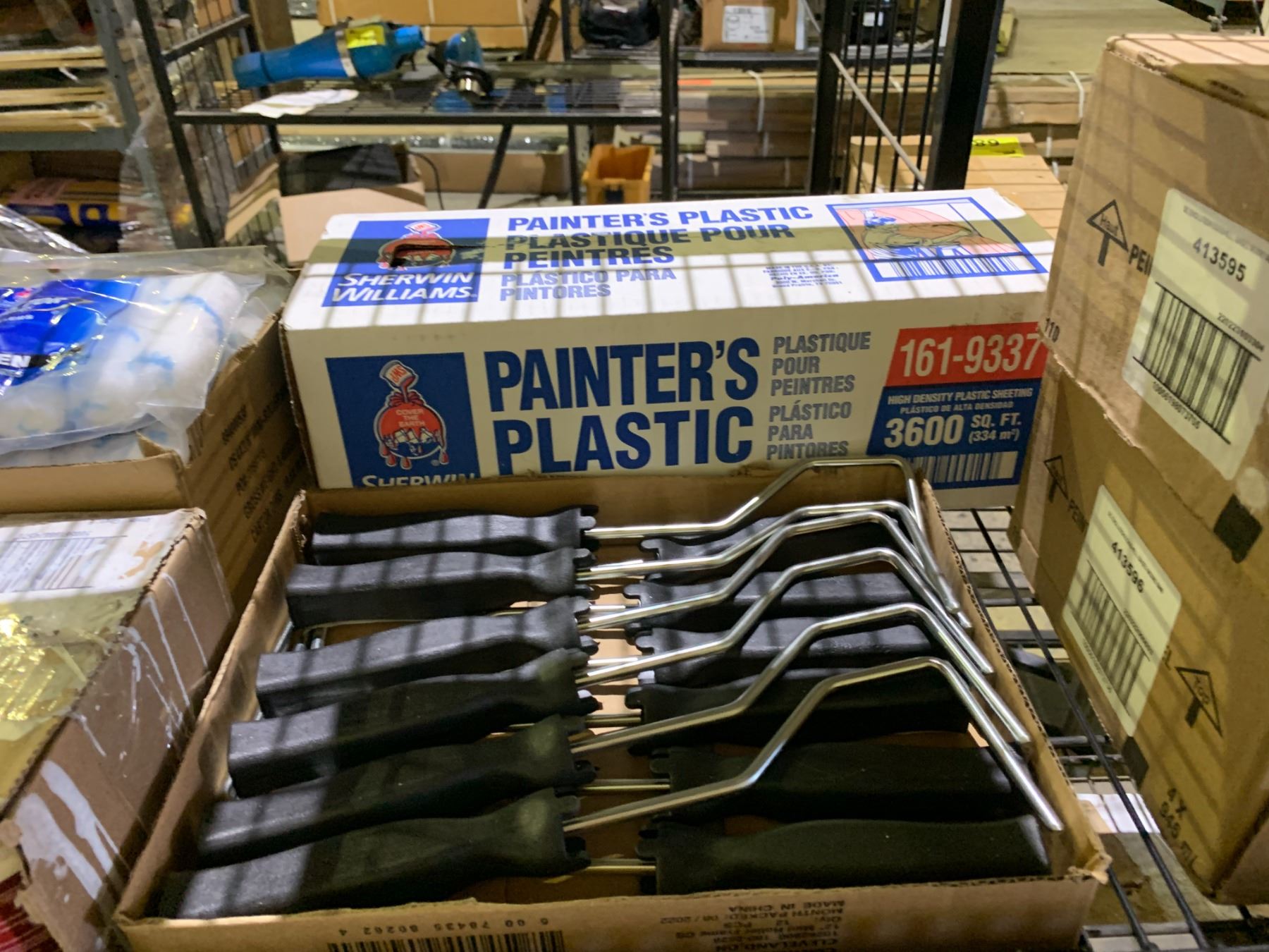 ASSORTED SICO PAINT AND PAINTERS SUPPLIES; PAINTERS, PLASTIC, ROLLERS AND ROLLER HANDLES